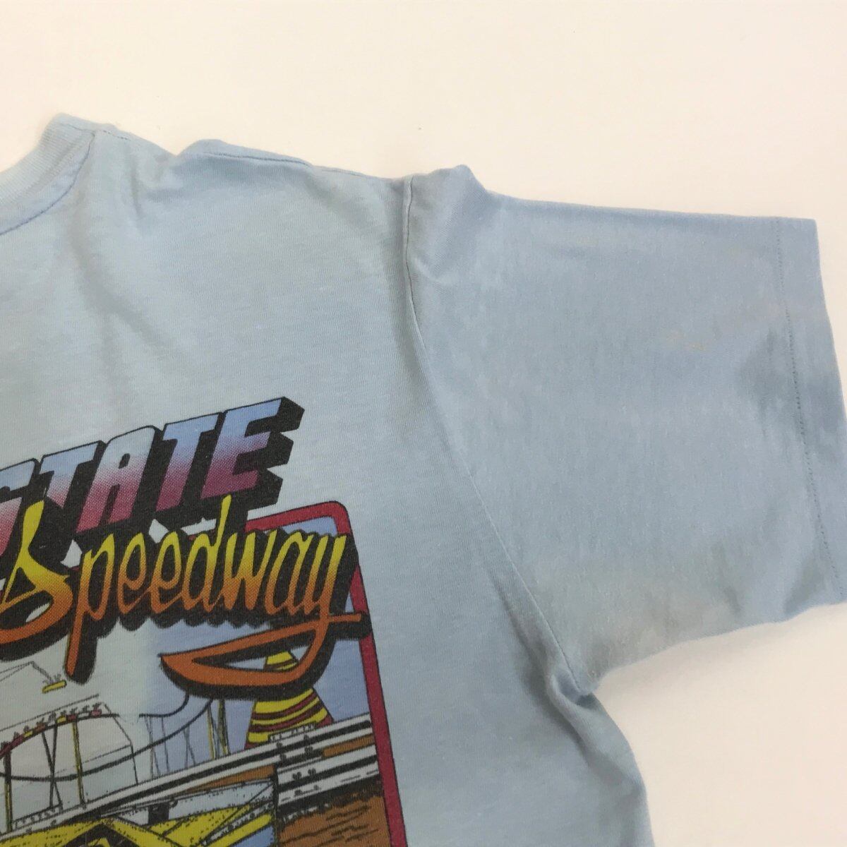 HANES ヘインズ 80年代 FLORIDA SPEEDWAY フロリダ スピードウェイ 両面プリント レーシング カー プリントTシャツ アイスブルー L 半袖