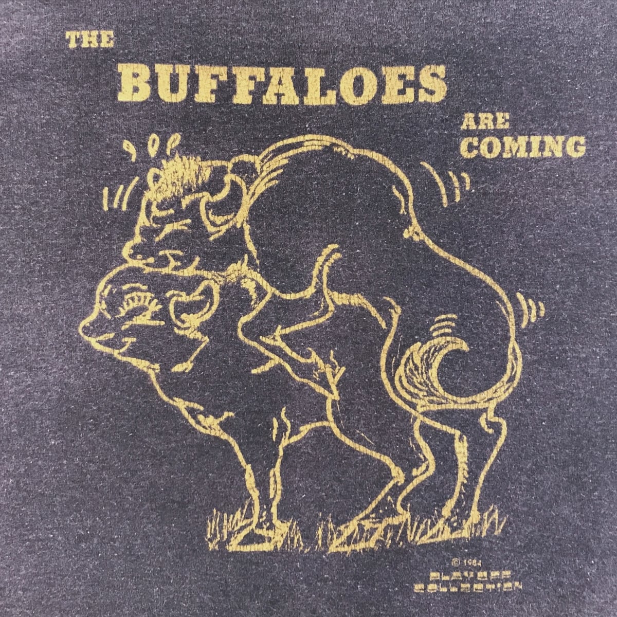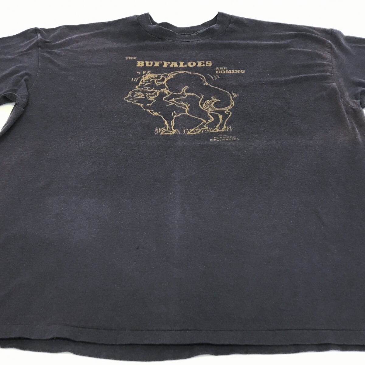 HANES ヘインズ 80年代 USA製 THE BUFFALOES ARE COMING SEXY Tシャツ 色褪せブラック XXL 半袖