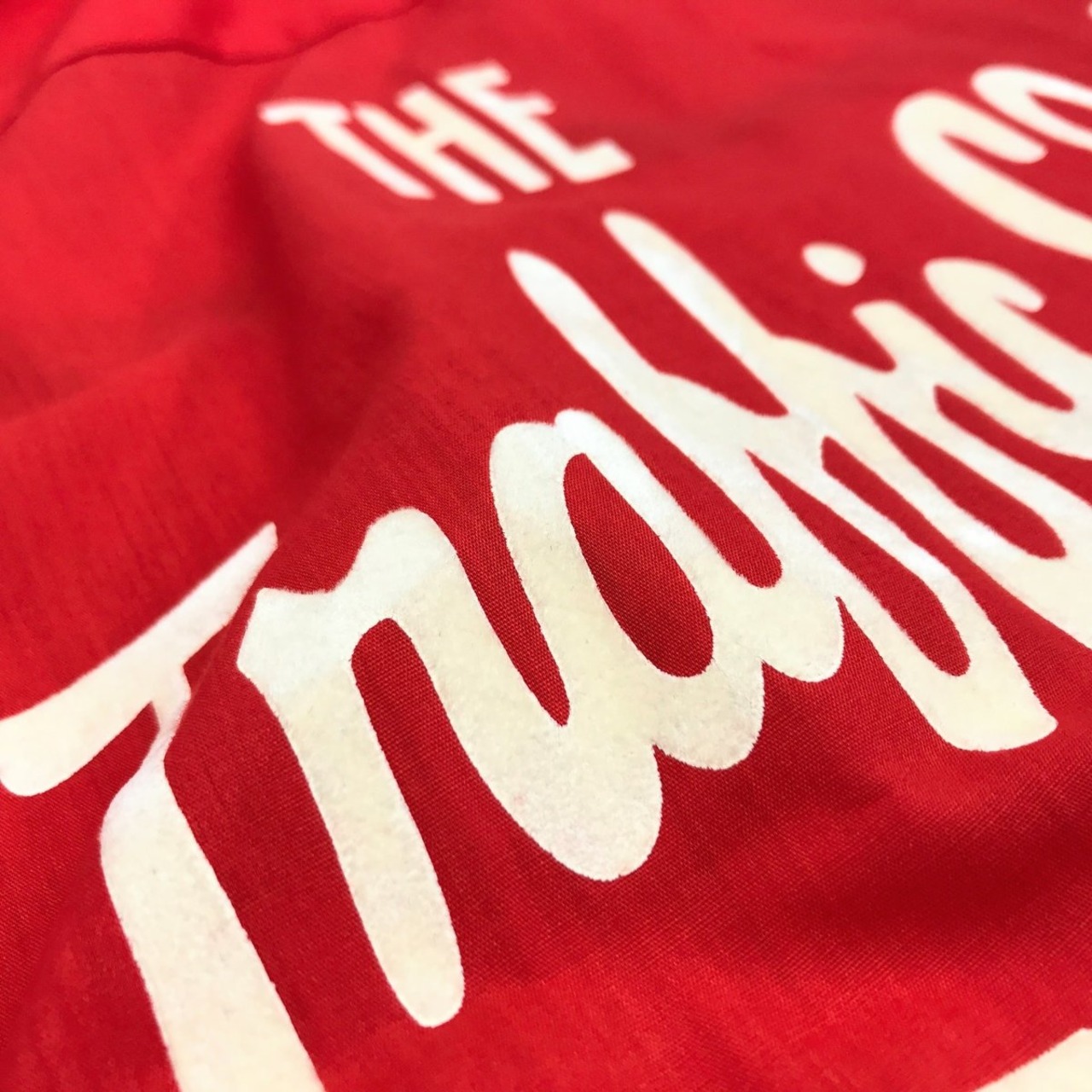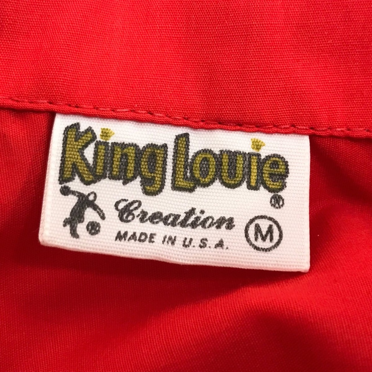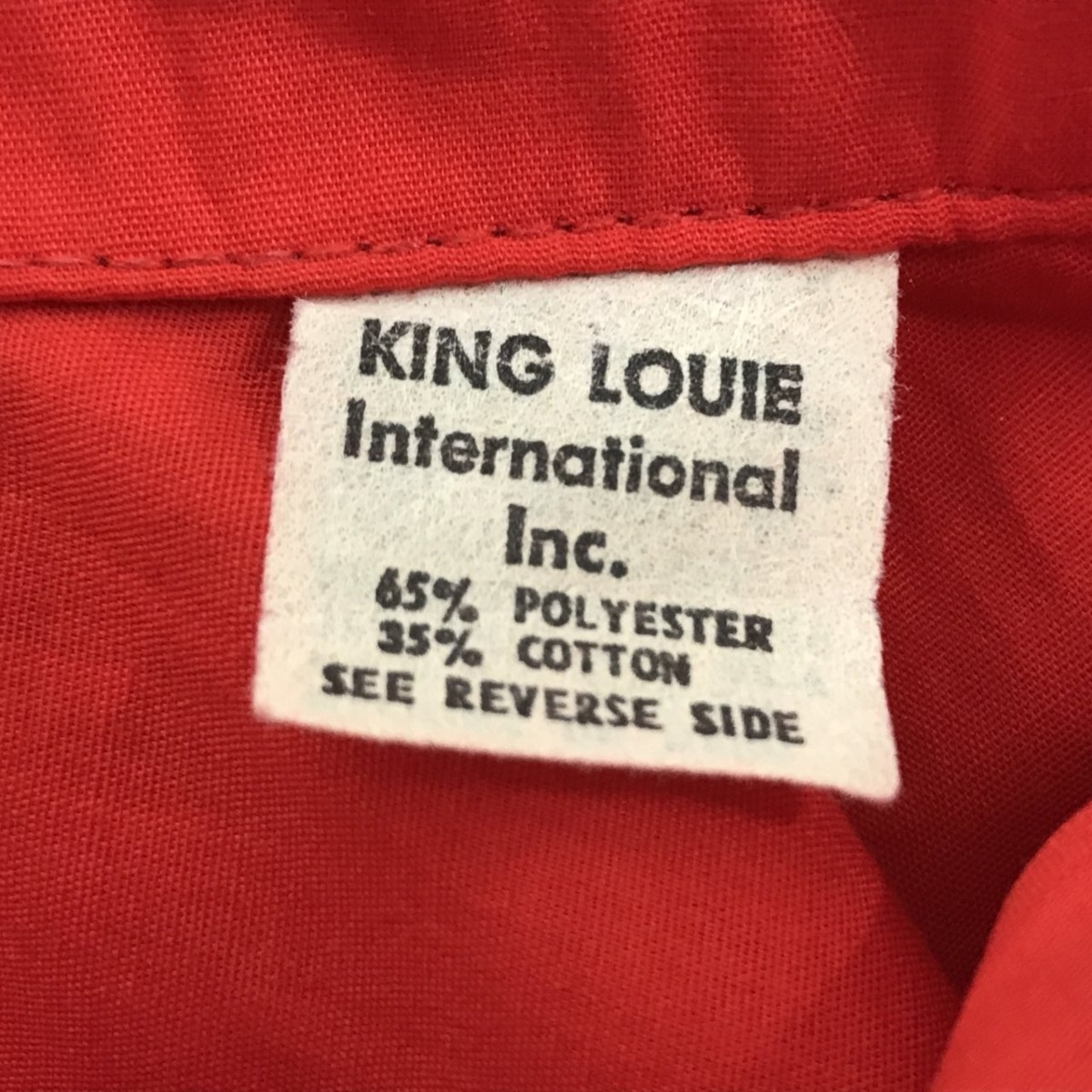 KIMG LOUIE キングルイ 70年代 CREATION タグ チェーンステッチ刺繍 フロッキー バックプリント入り ボーリング シャツ レッド L 半袖