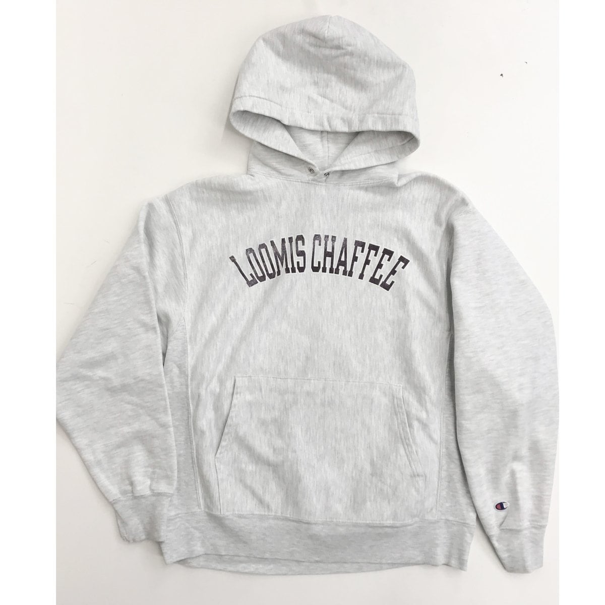 CHAMPION チャンピオン 00年代 オリジナル リバースウィーブ スウェット パーカー フーディー LOOMIS CHAFFEE カレッジ プリント ライトアッシュグレー L 長袖