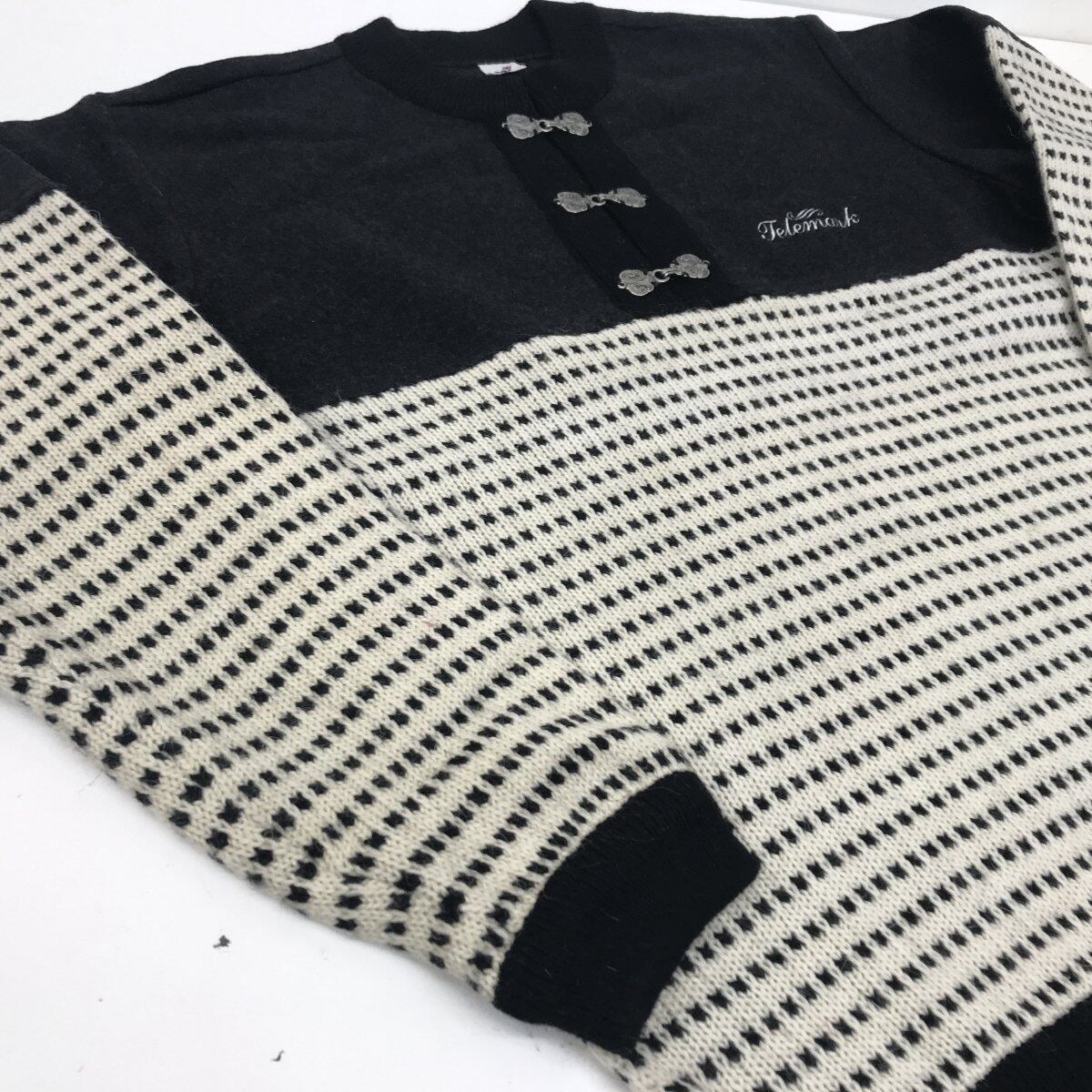 EURO VINTAGE W メルトン ウール 切替え メタルフック 金具付き バースアイ ニット ノルディック セーター ブラック XXL 以上〜 長袖