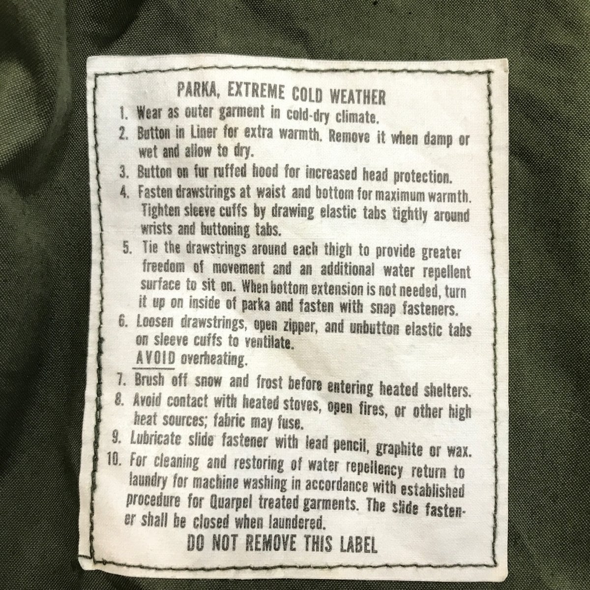 U.S.ARMY 70年代 PARKA EXTREME COLD WEATHER M-65 FISHTAIL PARKA フィールドパーカー フィッシュテール フードなし ライナー付き カーキグリーン X-SMALL - REGULAR 表記 長袖