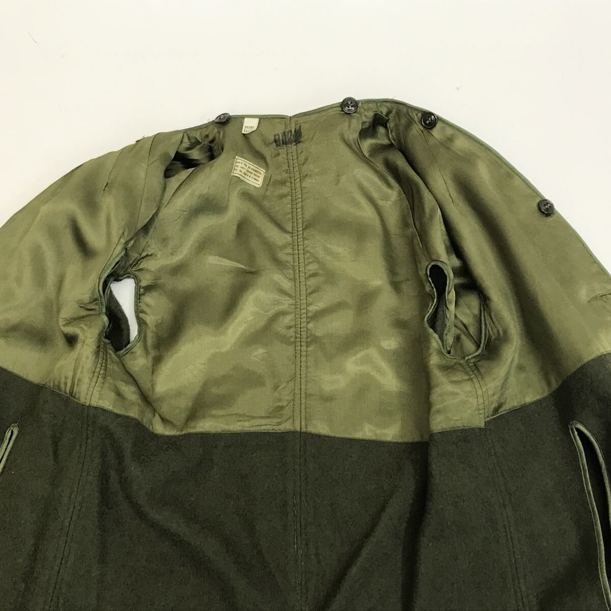 U.S.ARMY 50年代 USA製 パッチ付き ライナー付き コットンサテン オーバーコート オリーブグリーン SMALL-SHORT 表記 長袖