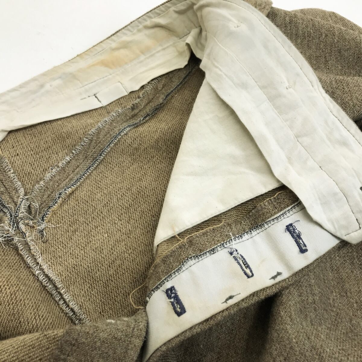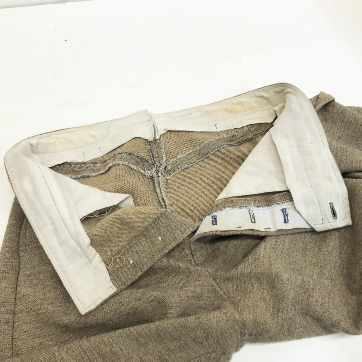 USED UNKNOWN 60 〜70年代前後? シンチバック サスペンダーボタン付き ウールパンツ ワークパンツ ブラウンベージュ W39 L34位