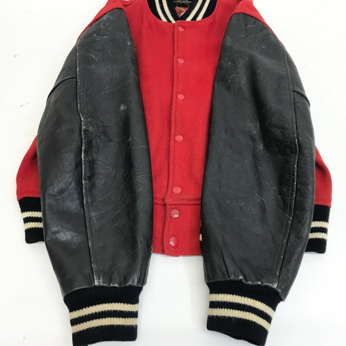 US VINTAGE 60年代 あたり FLYNNTAN LEATHER 使用 袖革 スタジャン ベースボール ジャケット アワード ジャケット レッド ブラック 42 表記 長袖