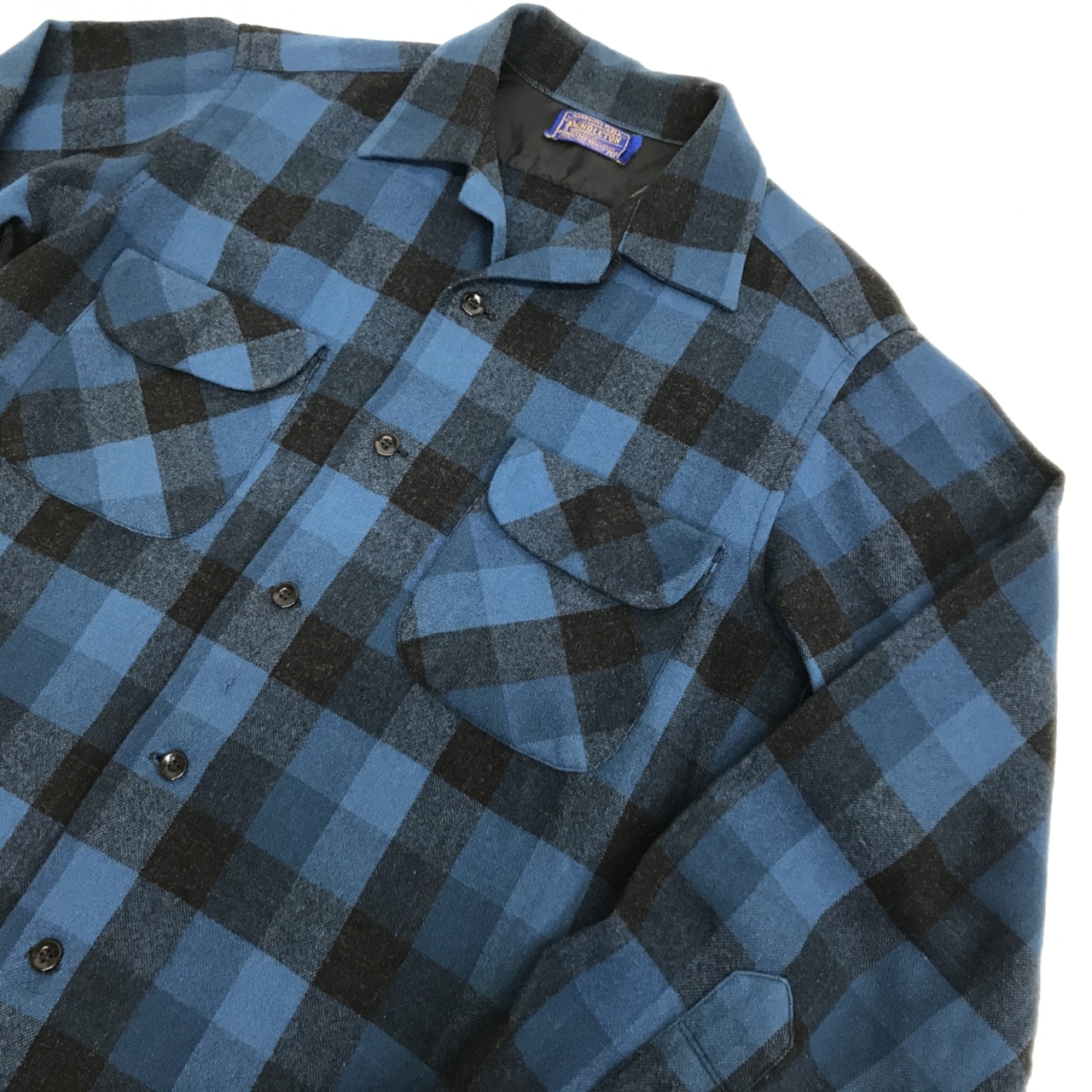 PENDLETON ペンドルトン 50年代 USA製 オープンカラー ブロックチェック ウールシャツ ブルー ネイビー M 長袖