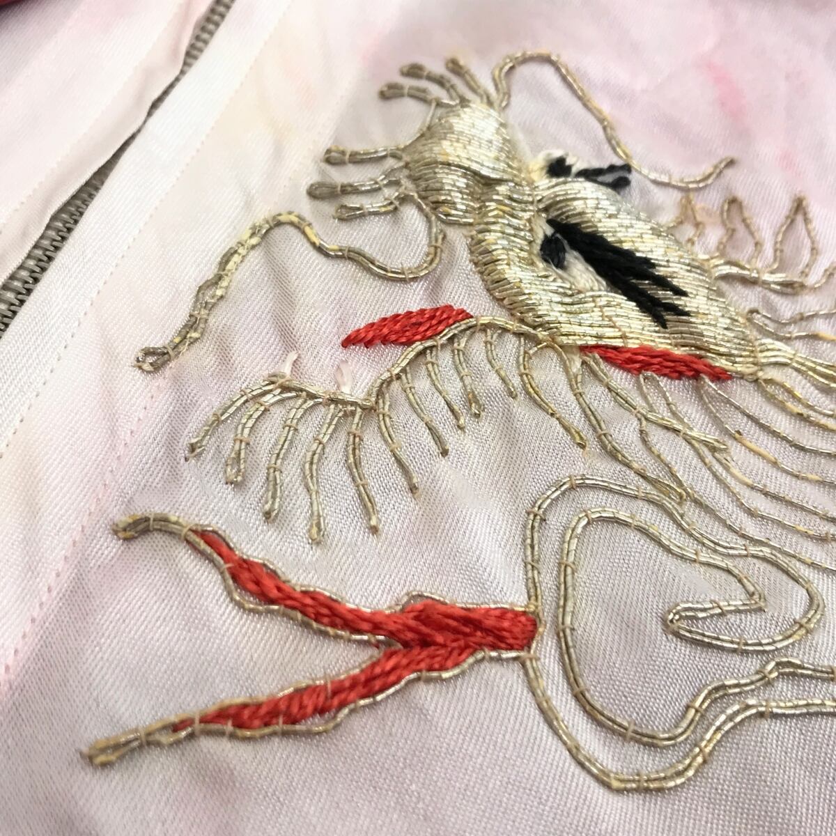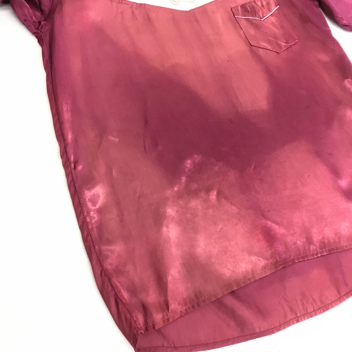 VINTAGE ビンテージ 50年代 シルクサテン スカシャツ 斜めジップ プルオーバー SAKURA ZIPPER 龍 ドラゴン 刺繍 ワイン L 長袖