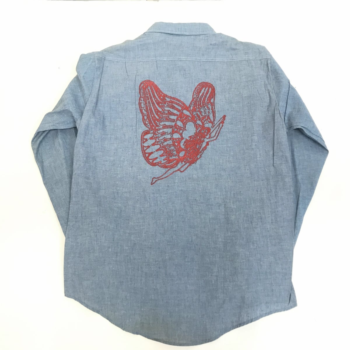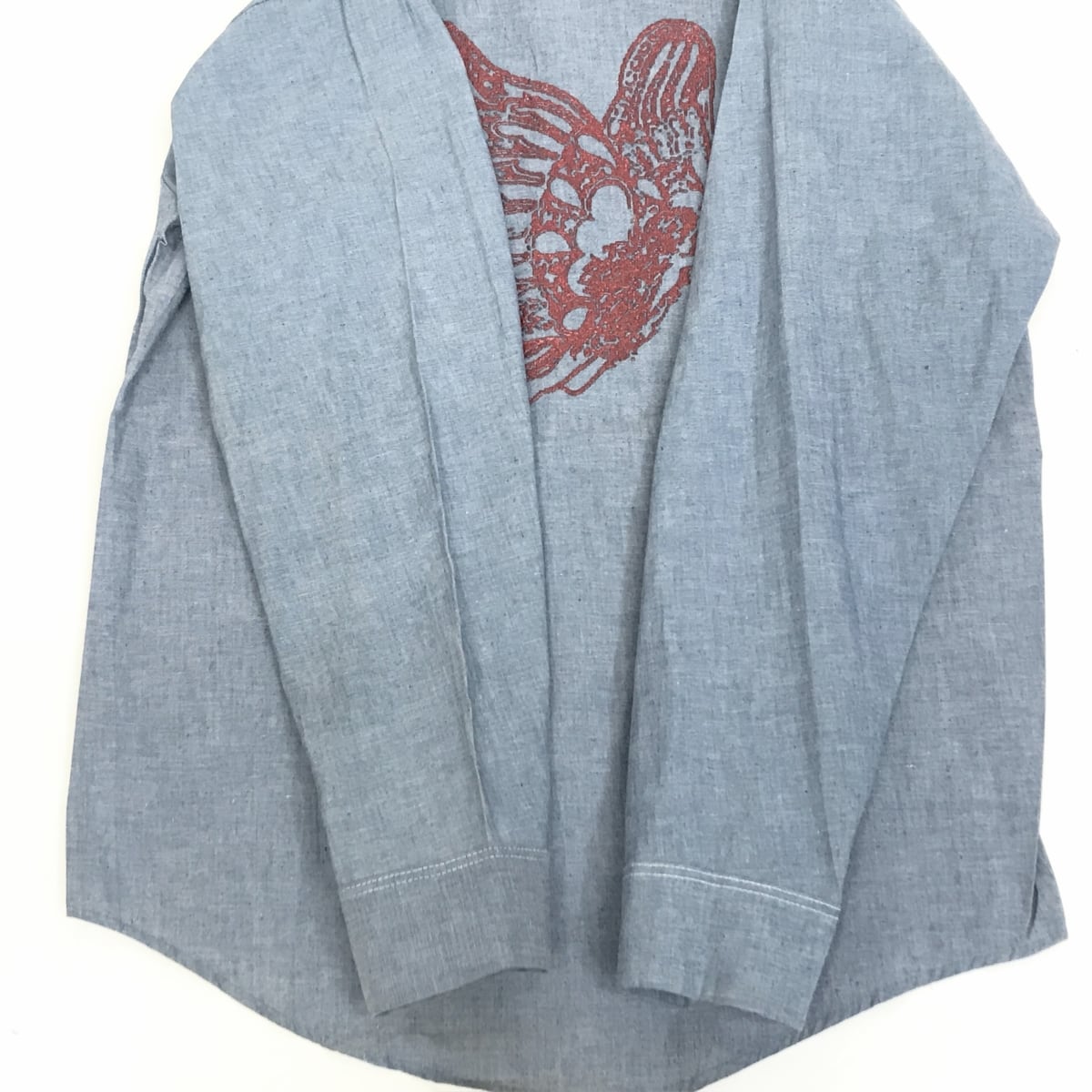 ELY エリー 70年代 USA製 デッドストック デニム シャンブレーシャツ 両面ラメプリント 入り ライトブルー 15 1/2 長袖