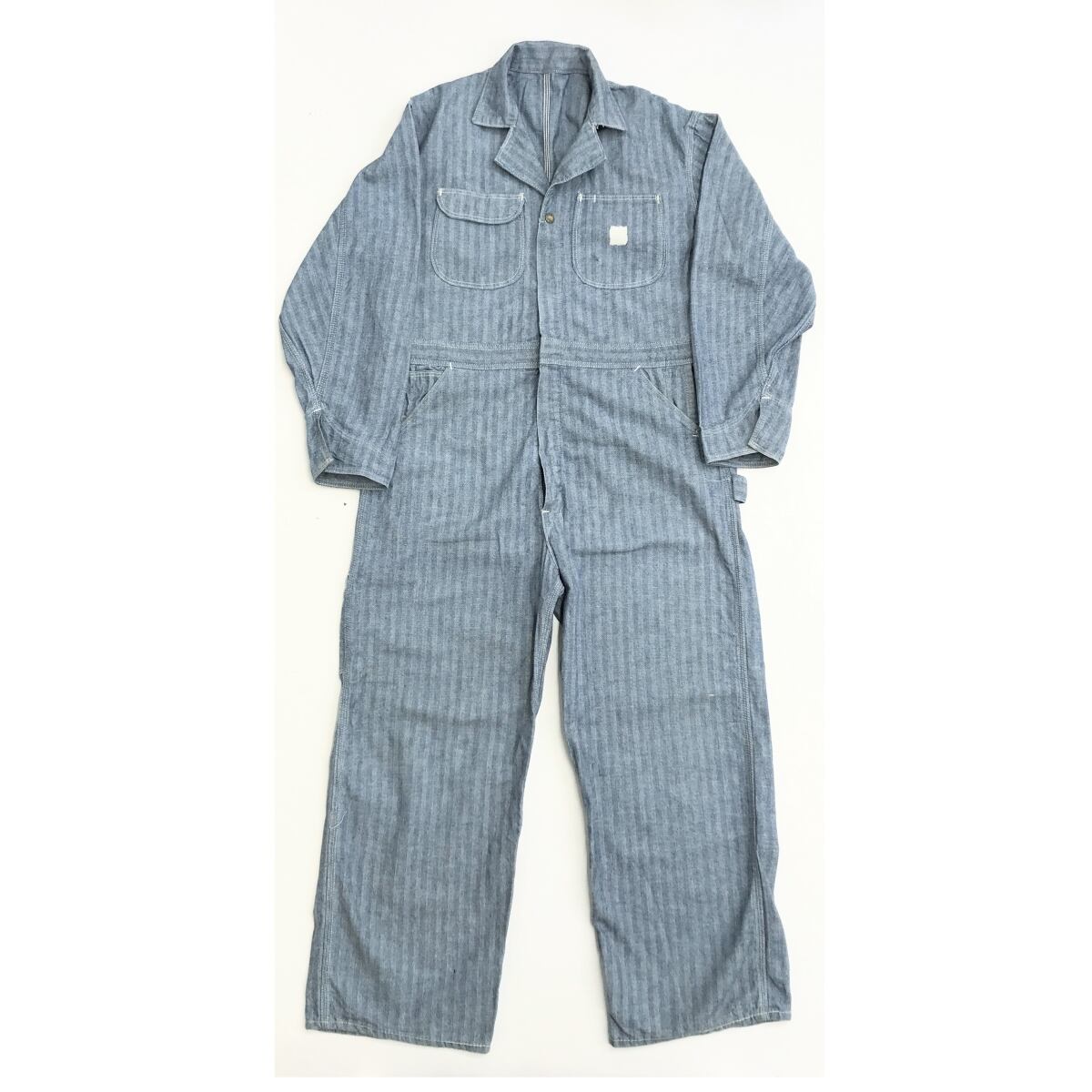 US VINTAGE おそらく POINTER 70〜 80年代 HBT ツナギ つなぎ オールインワン ブルー W39 L28 相当 長袖