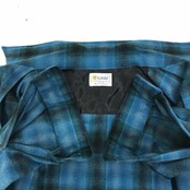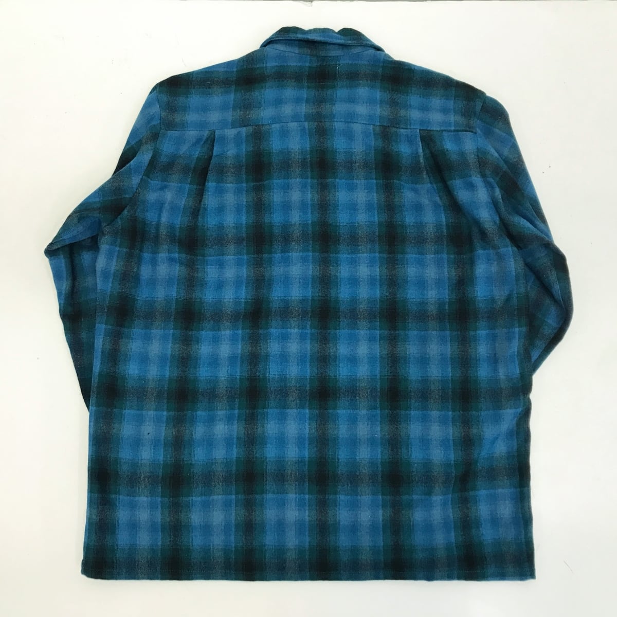 WALDORF 60〜 70年代 ウールシャツ REPROCESSED WOOL チェック オープンカラーシャツ ブルー L 長袖