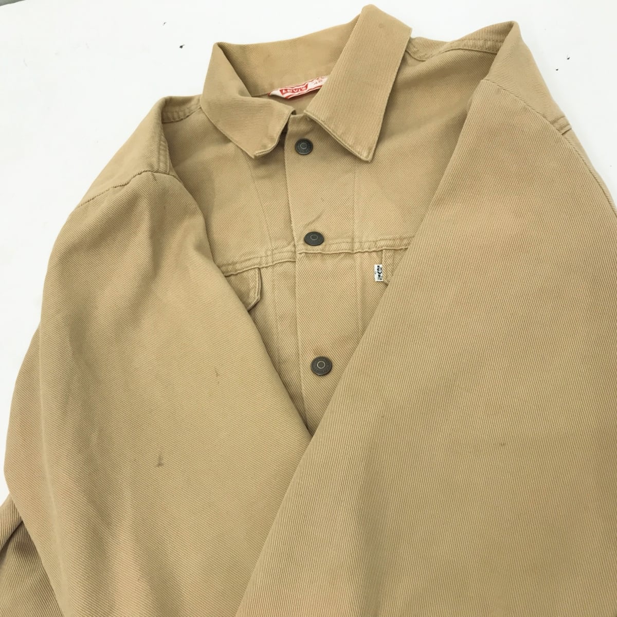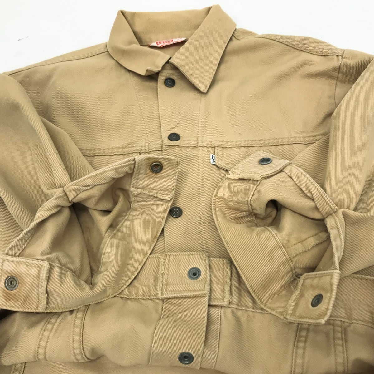 LEVI'S リーバイス 70年代 70505 三角タグ 白タブ スモールe 不均等V かつらぎコットン カラーデニム ジャケット スナップボタン ベージュオレンジ 46表記 L 位 長袖