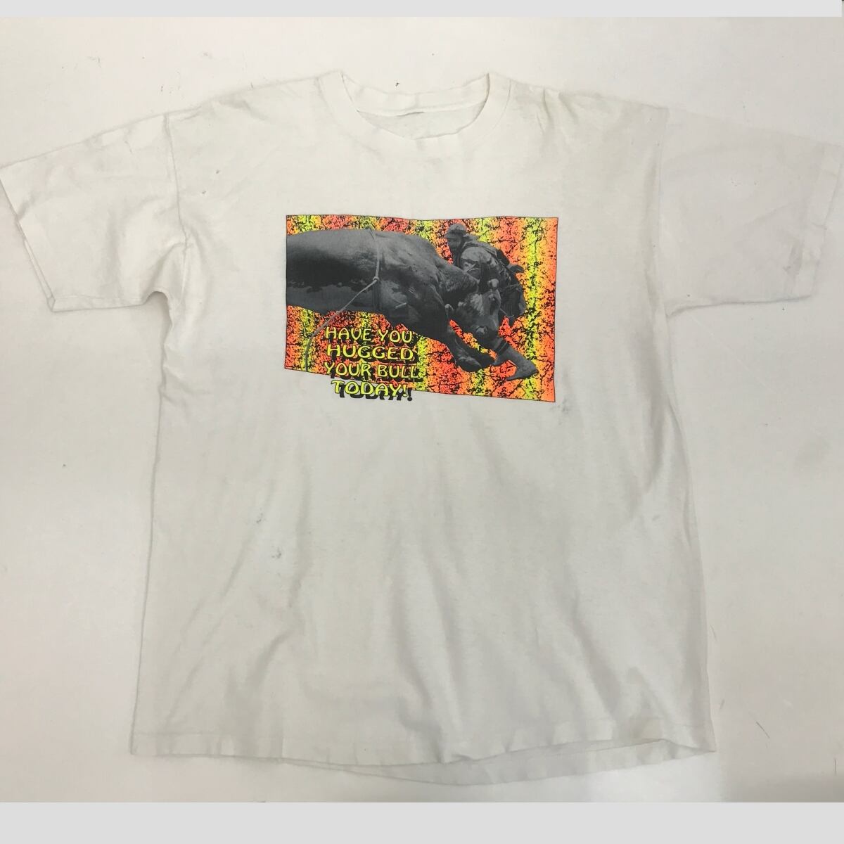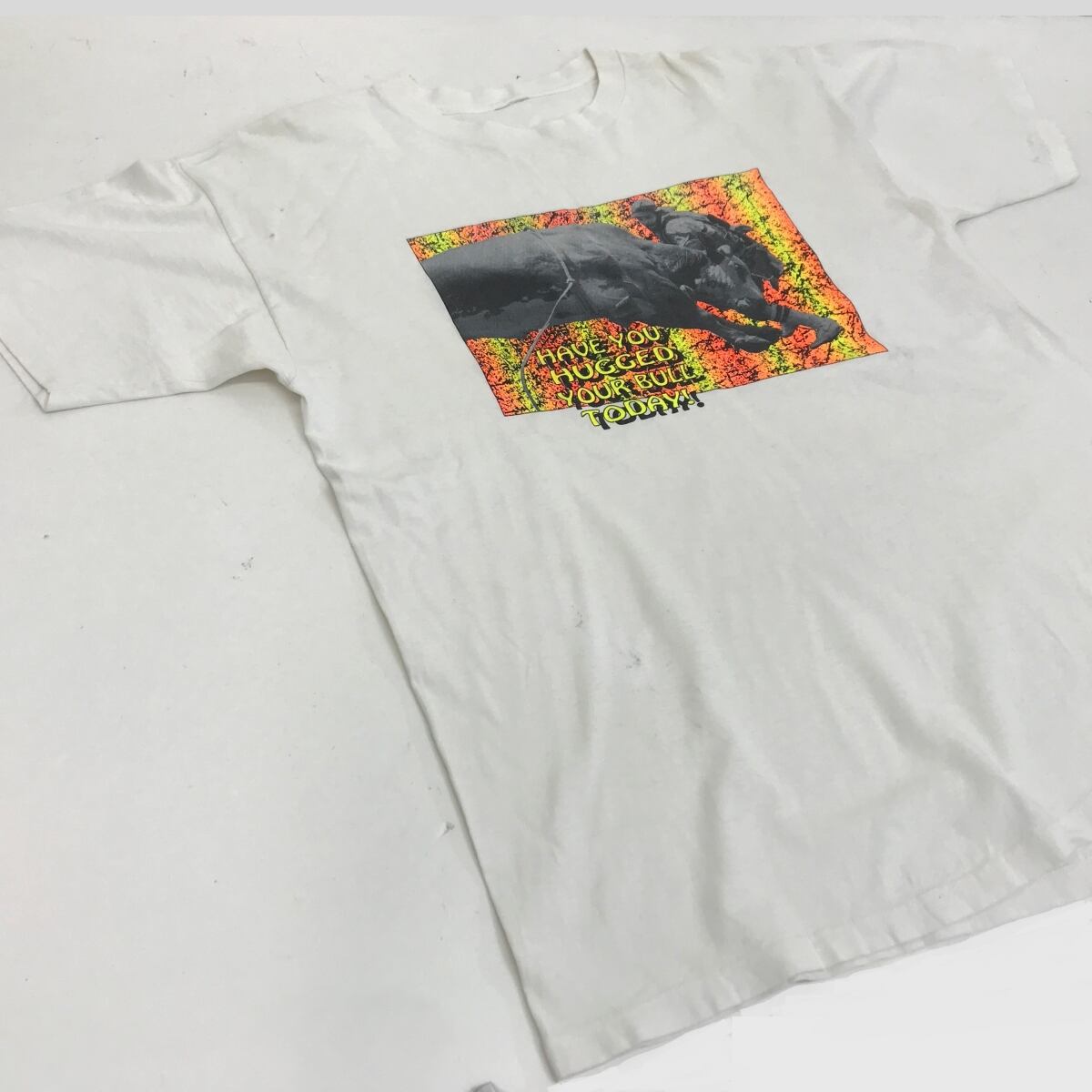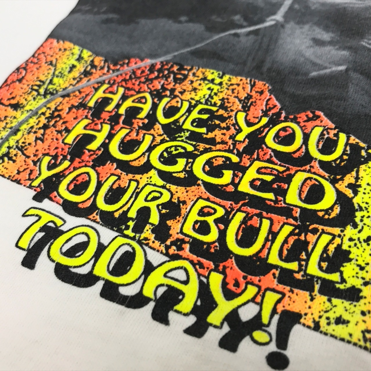 US VINTAGE 80〜 90年代 あたり HAVE YOU HUGGED YOUR BULL TODAY ! 蛍光プリント POP COLOR プリントTシャツ ホワイト XXL 半袖