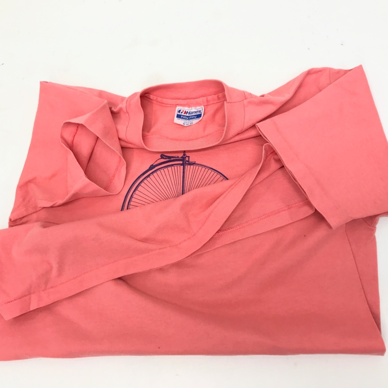 HANES ヘインズ 80〜 90年代 USA製 LEELANAU HARVEST TOUR 89 自転車 CLASSIC BICYLE プリントT ピンク M 表記 半袖