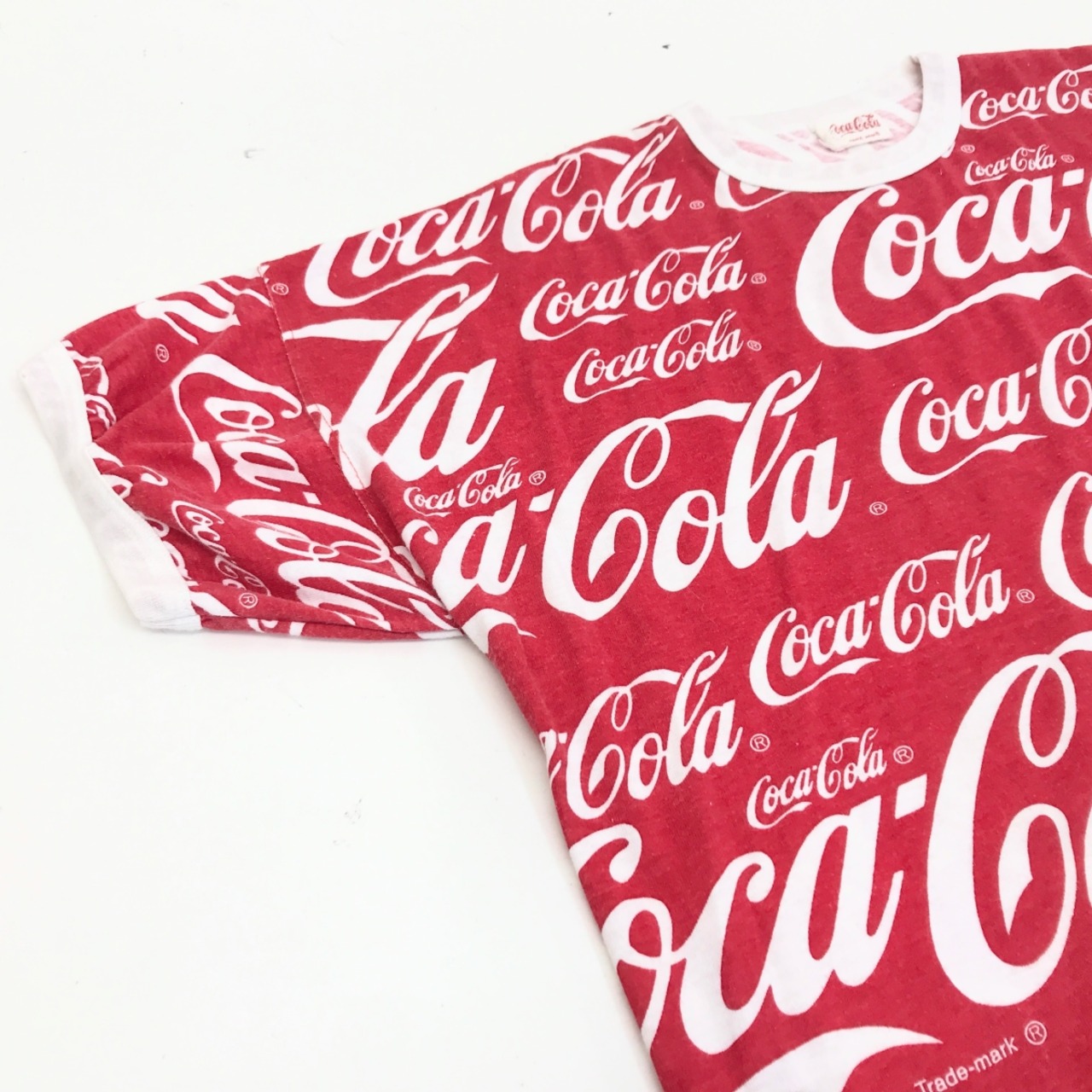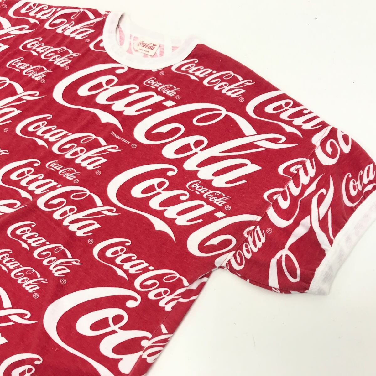 COCA COLA コカコーラ 90〜 00年代 総柄 全柄 ロゴ リンガー Tシャツ レッド XXL 半袖