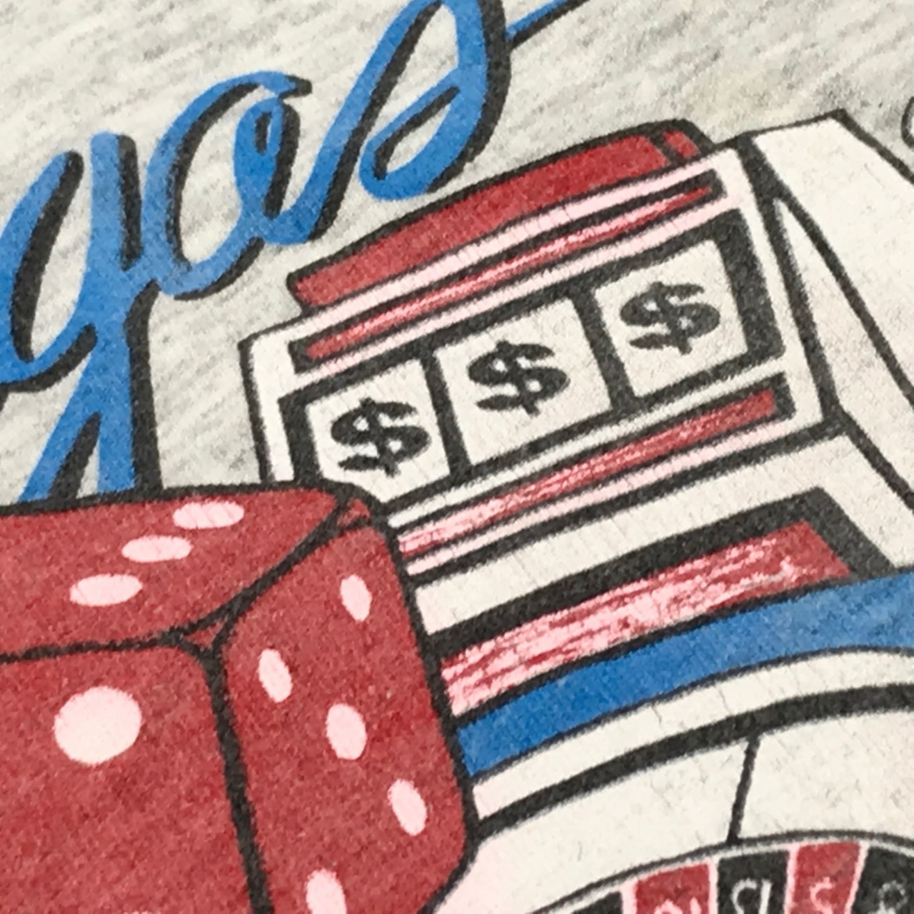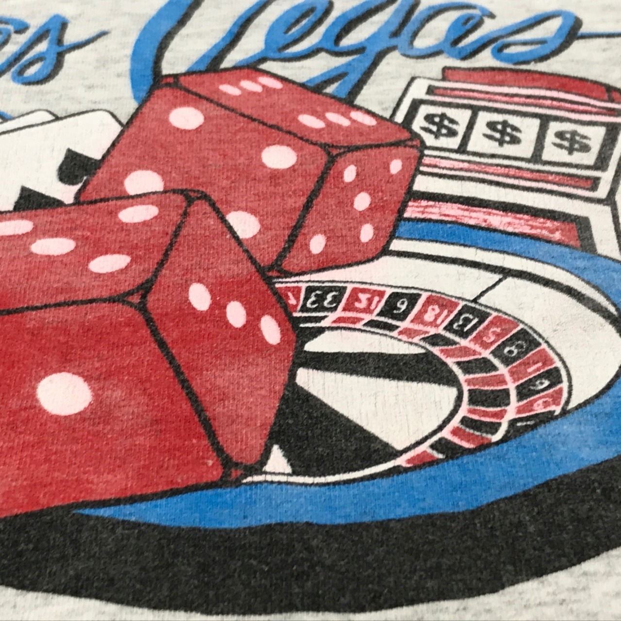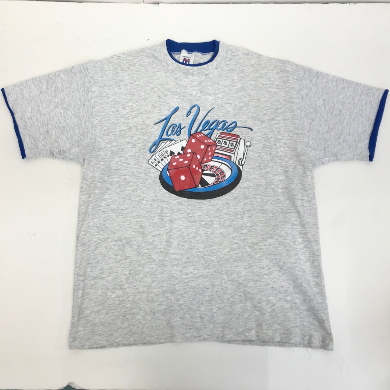 MODEL T 90年代 USA製 LAS VEGAS ラスベガス ダイス ルーレット ダブルカラー 襟袖 フェイクレイヤード プリントTシャツ アッシュグレー L 表記 半袖