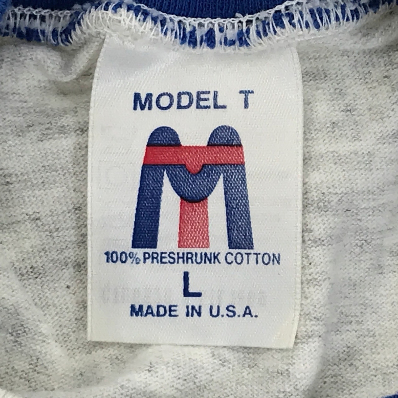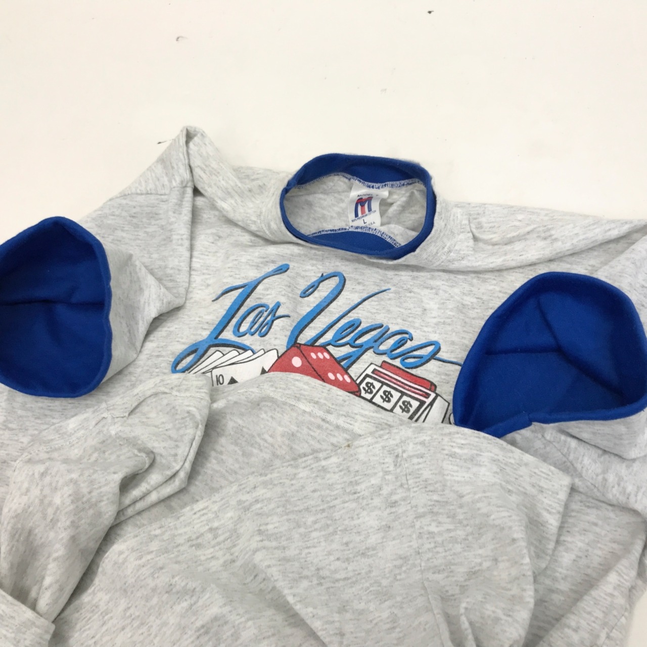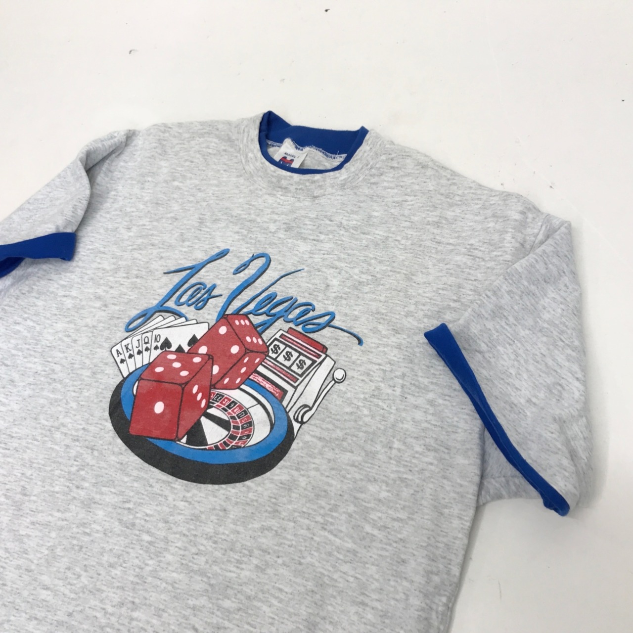 MODEL T 90年代 USA製 LAS VEGAS ラスベガス ダイス ルーレット ダブルカラー 襟袖 フェイクレイヤード プリントTシャツ アッシュグレー L 表記 半袖