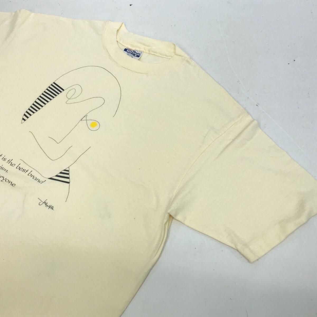 HANES ヘインズ 80〜 90年代 USA製 アーティストタッチ ドローイング メッセージTシャツ デザインT アートT ライトイエロー XL 表記 半袖