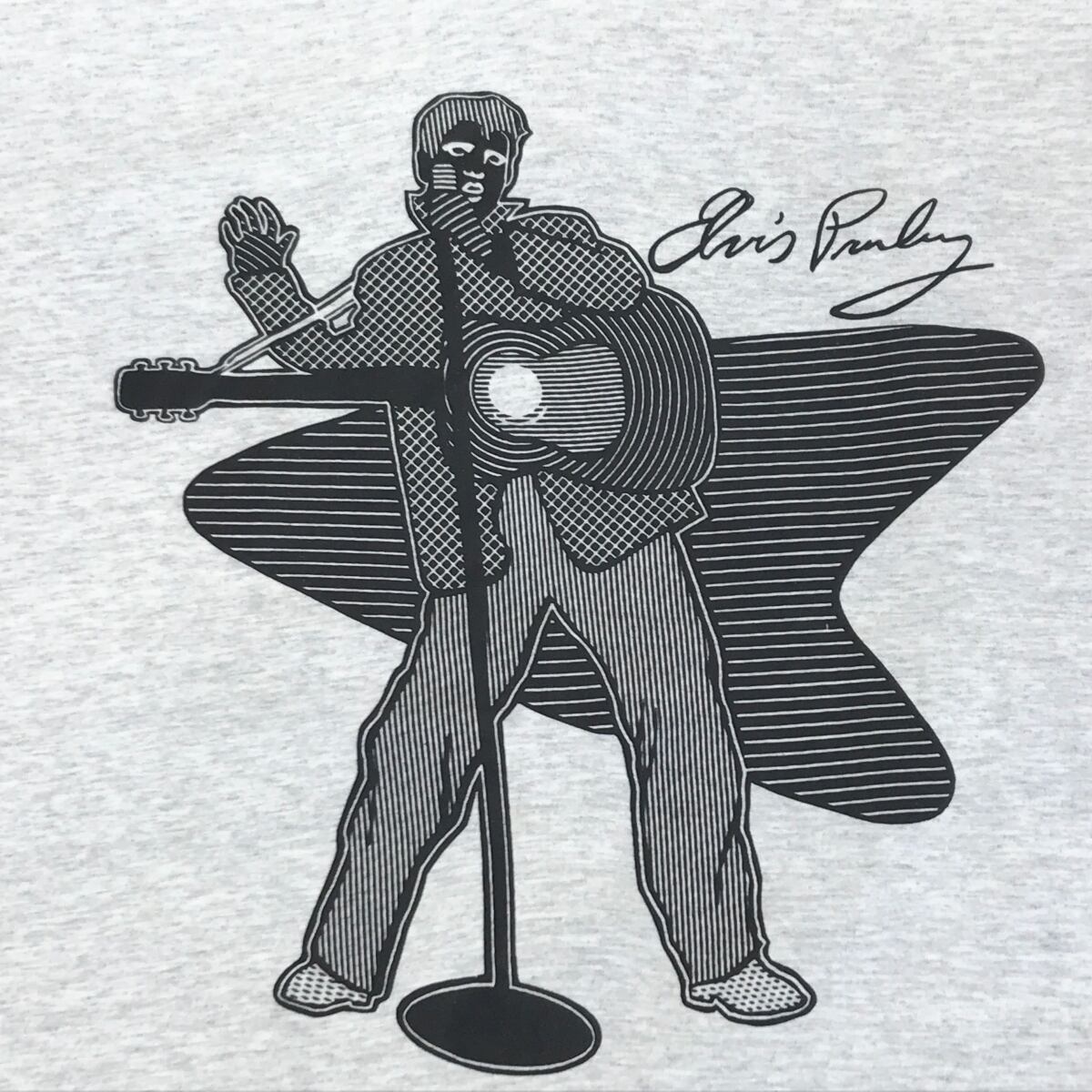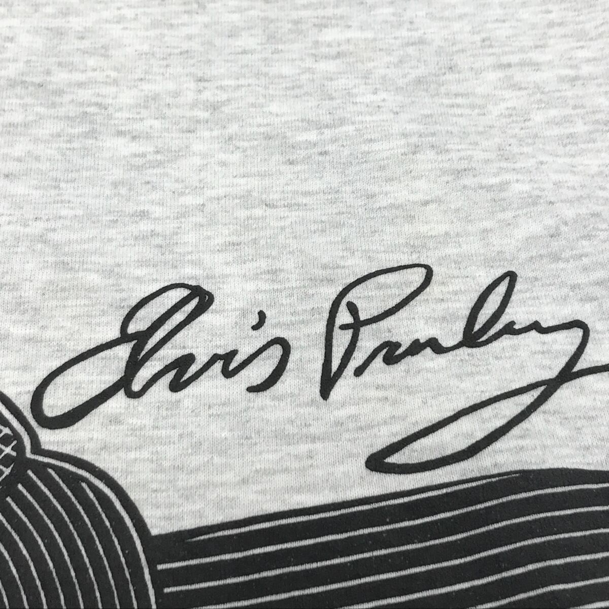SHERRY'S BEST シェリーズベスト 80 〜90年代 USA製 ELVIS PRESLEY エルヴィス・プレスリー デッドストック Tシャツ 両面プリント 襟袖ダークネイビー フェイクレイヤード ライトアッシュグレー XL 表記 半袖 | 古着屋 EAGLEBASE