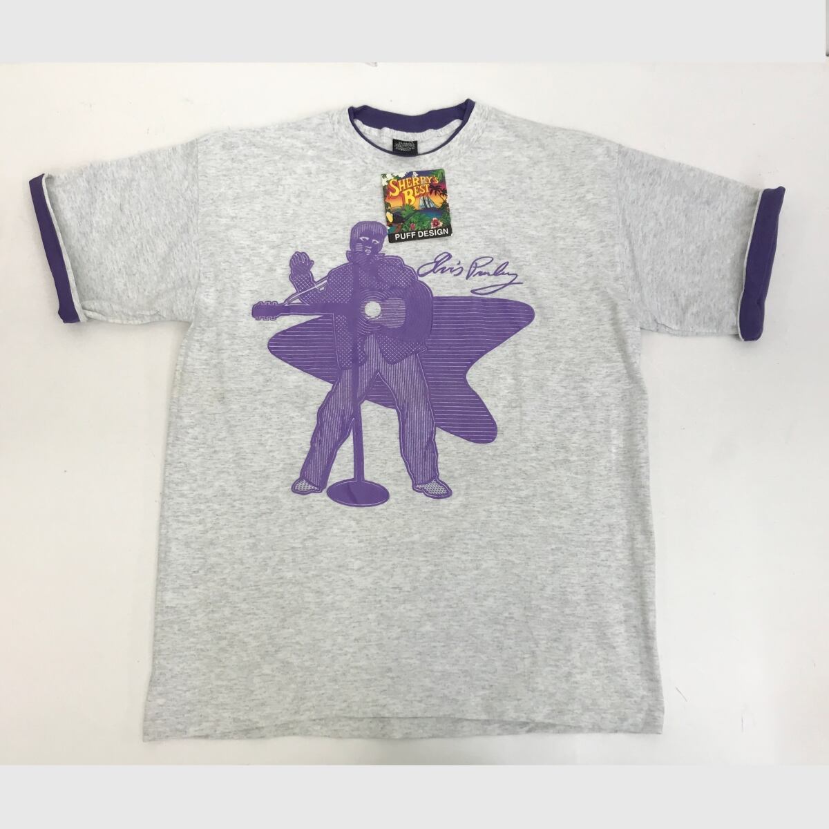 SHERRY'S BEST シェリーズベスト 80 〜90年代 USA製 ELVIS PRESLEY エルヴィス・プレスリー デッドストック Tシャツ 両面プリント 襟袖パープル フェイクレイヤード ライトアッシュグレー XL 表記 半袖 | 古着屋 EAGLEBASE