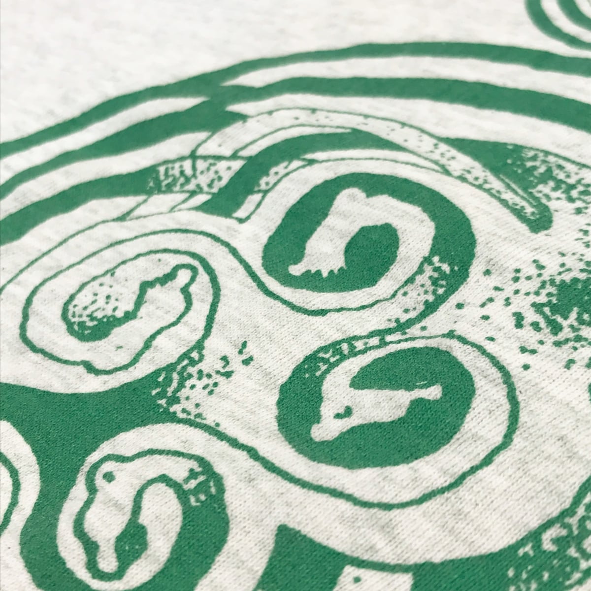 FRUIT OF THE LOOM|フルーツオブザルーム 90年代 USA製 FOOTSTONE 両面プリント Tシャツ アートT グレー XL 表記 半袖