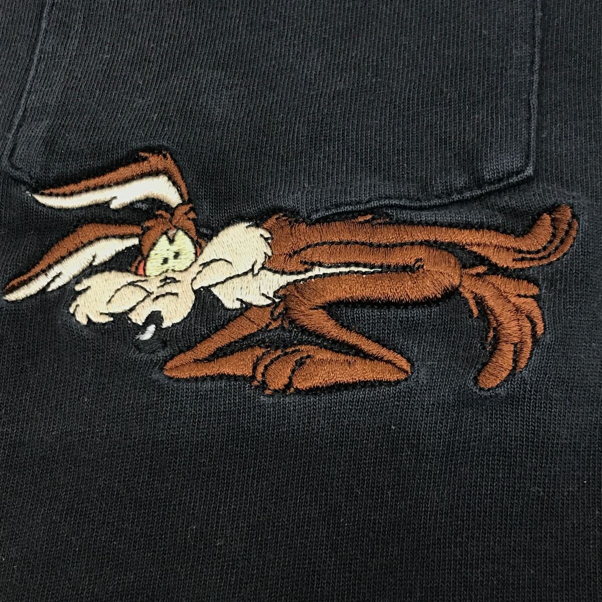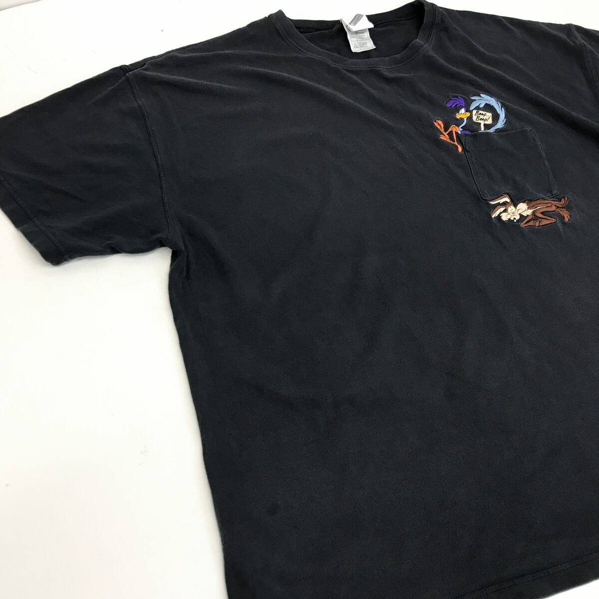 WARNER BROS. STUDIO STORE ワーナーブラザース 90〜 00年代 LOONEY TUNES ルーニー テューンズ ロードランナー ワイリーコヨーテ キャラクター Tシャツ 刺繍 ポケT ブラック XXL 表記 半袖