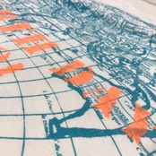 かすれたステンシルタイプのビビッドカラーのロゴが
