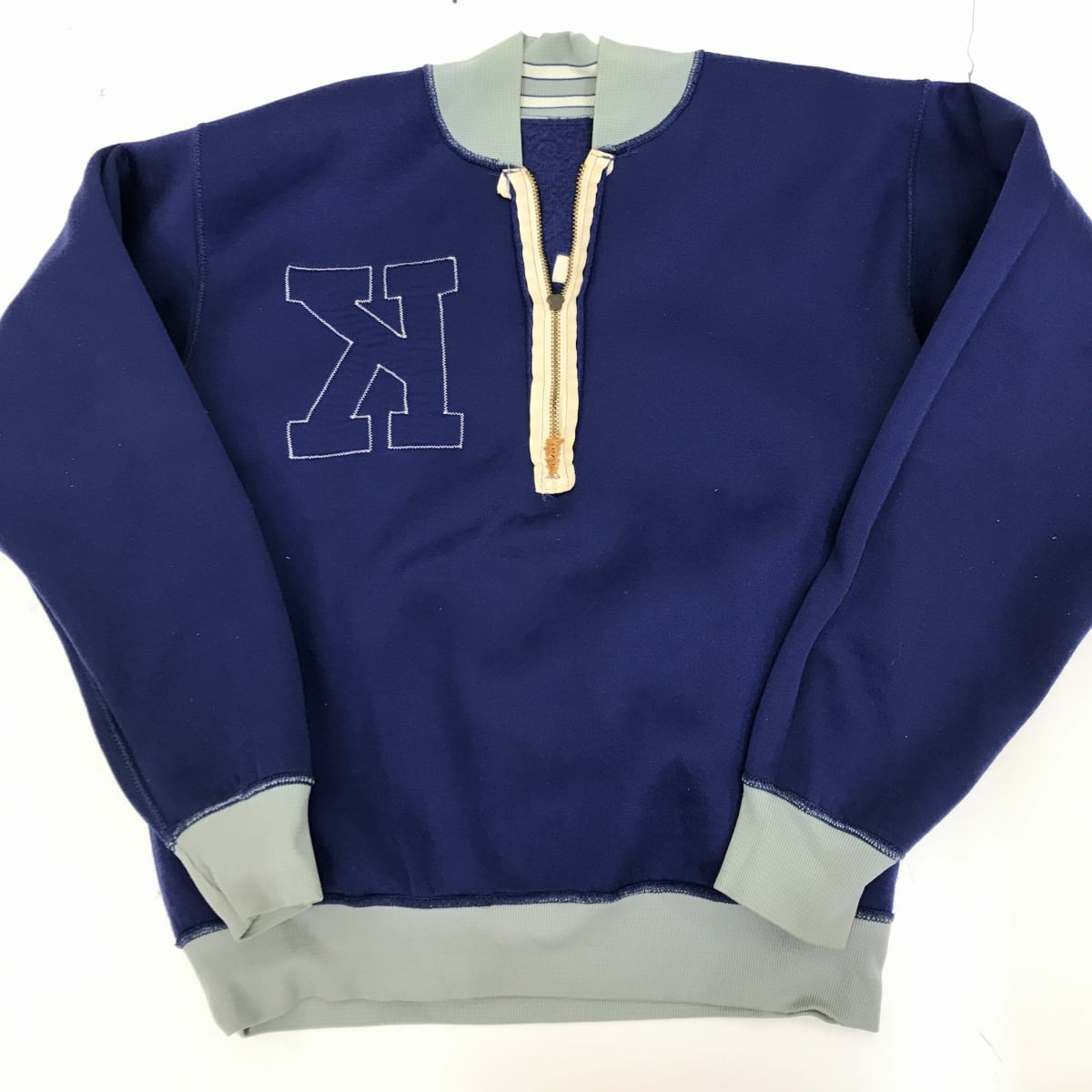 CHAMPION チャンピオン 60年代 USA製 タタキタグ フリース風 ハーフジップ プルオーバー スウェット ブルー MEDIUM 表記 長袖