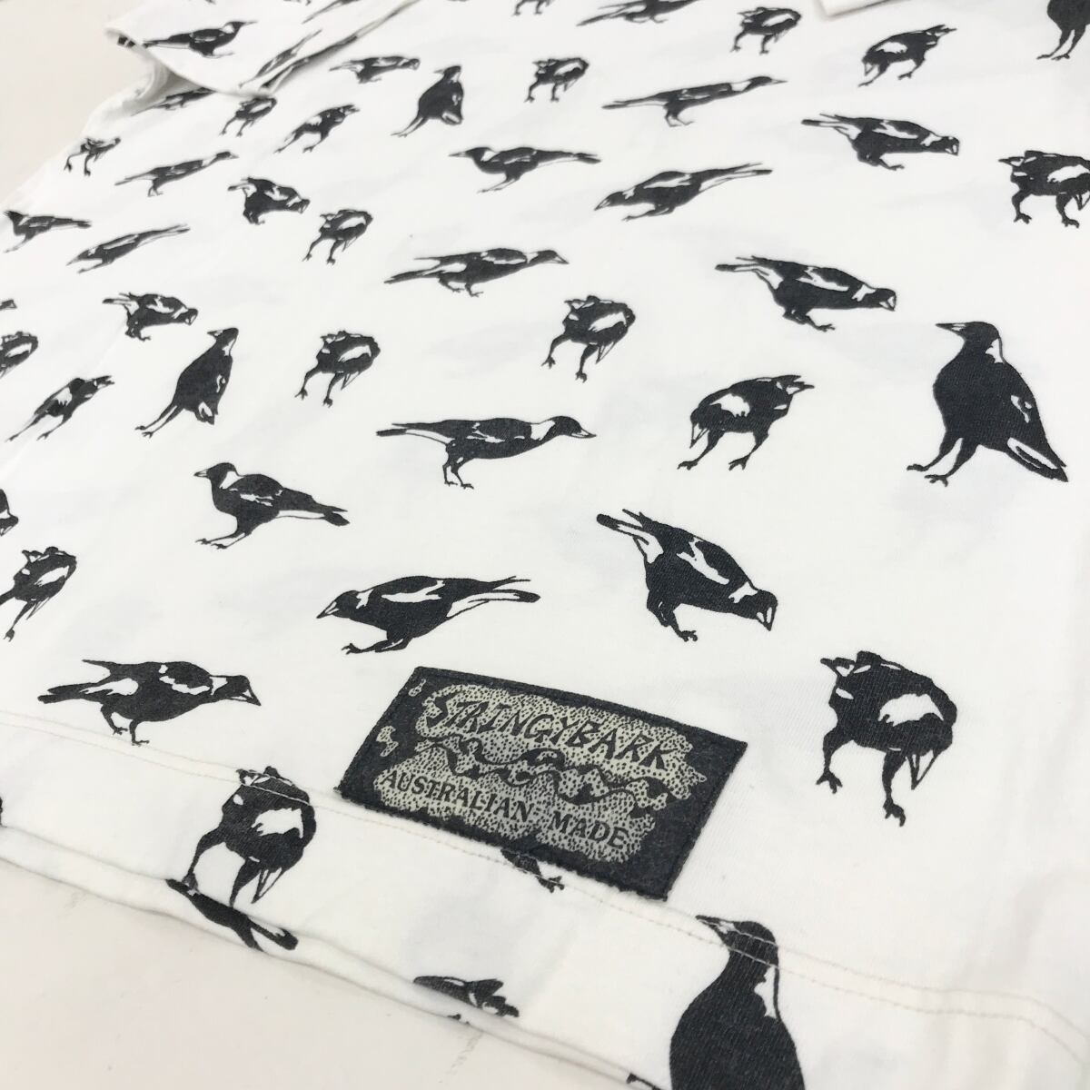 STRINGYBARK GRAPHICS オーストラリア製 アニマル MAGPIE グラフィックTシャツ アートT 総柄 全柄 ホワイト L 表記 半袖