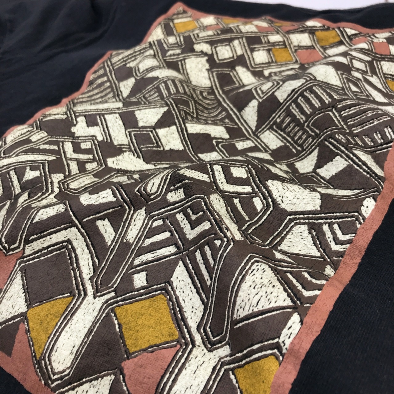 FRUIT OF THE LOOM|フルーツオブザルーム 〜00年代 USA製 アフリカ KUBA CLOTH クバクロス柄 Tシャツ ブラック L 表記 半袖