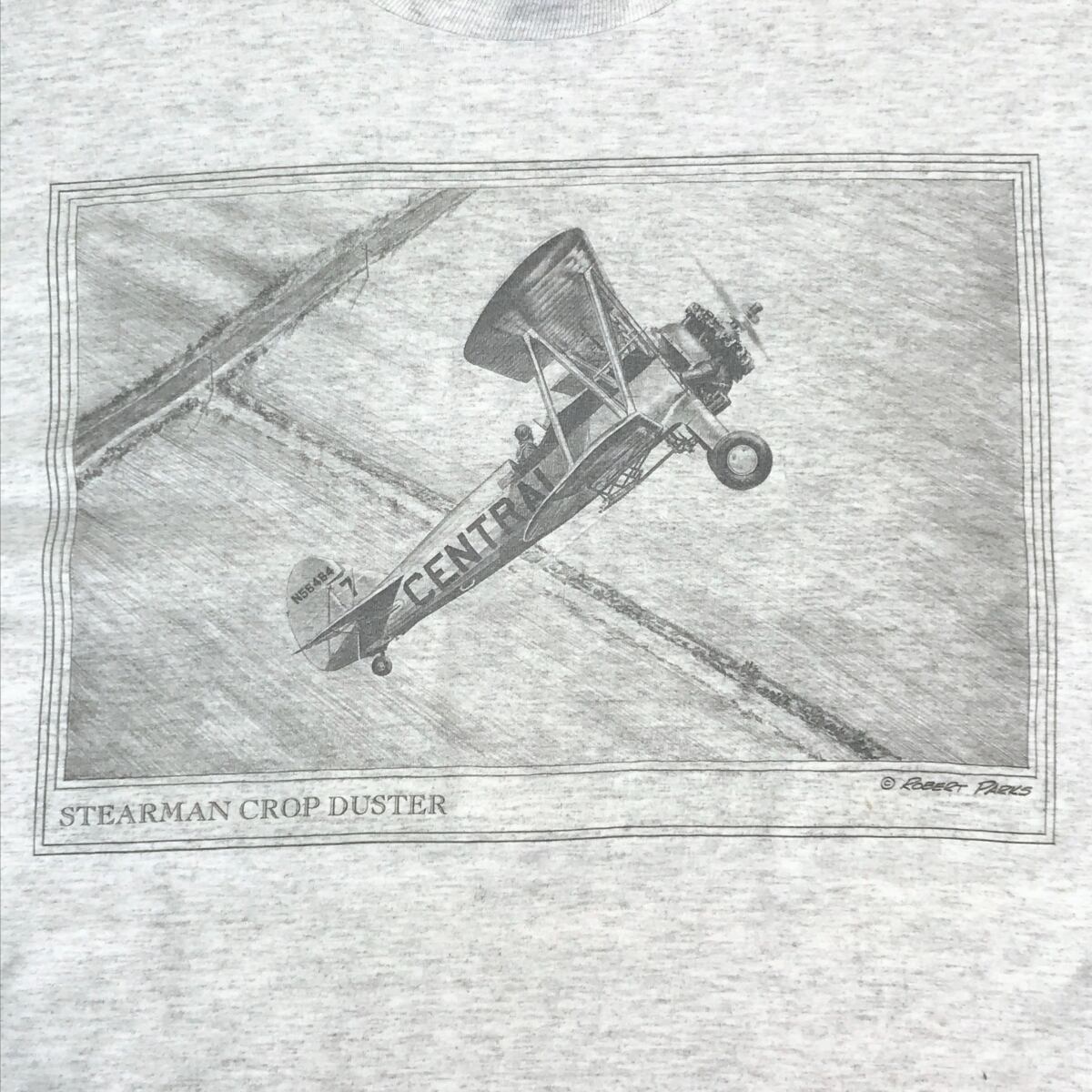JERZEES ジャージーズ 90年代 ROBERT PARKS STEARMAN CROP DUSTER 飛行機 イラスト アート グラフィック Tシャツ アッシュグレー XL 表記 半袖
