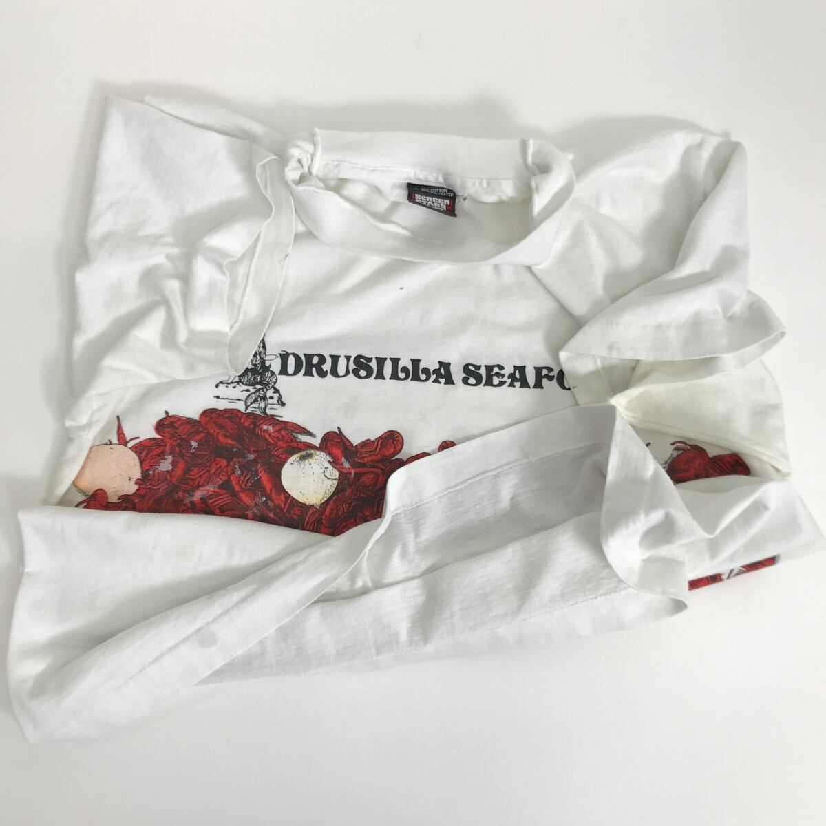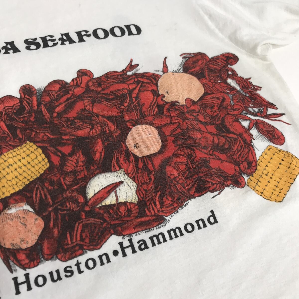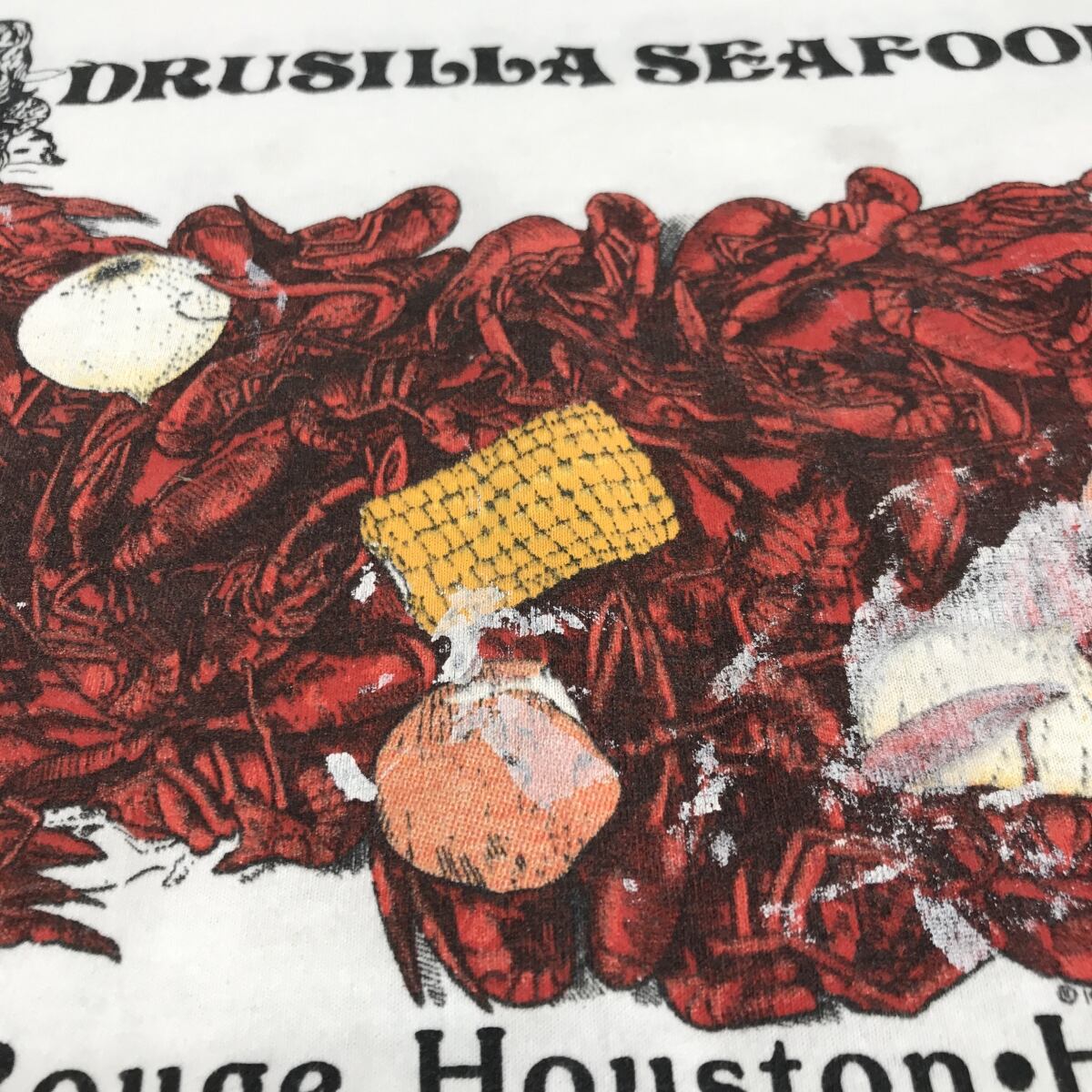 SCREEN STARS 80年代 USA製 DRUSILLA SEAFOOD レストラン 企業 Tシャツ アート 海老 エビ Tシャツ グラフィック Tシャツ ホワイト L 表記 半袖
