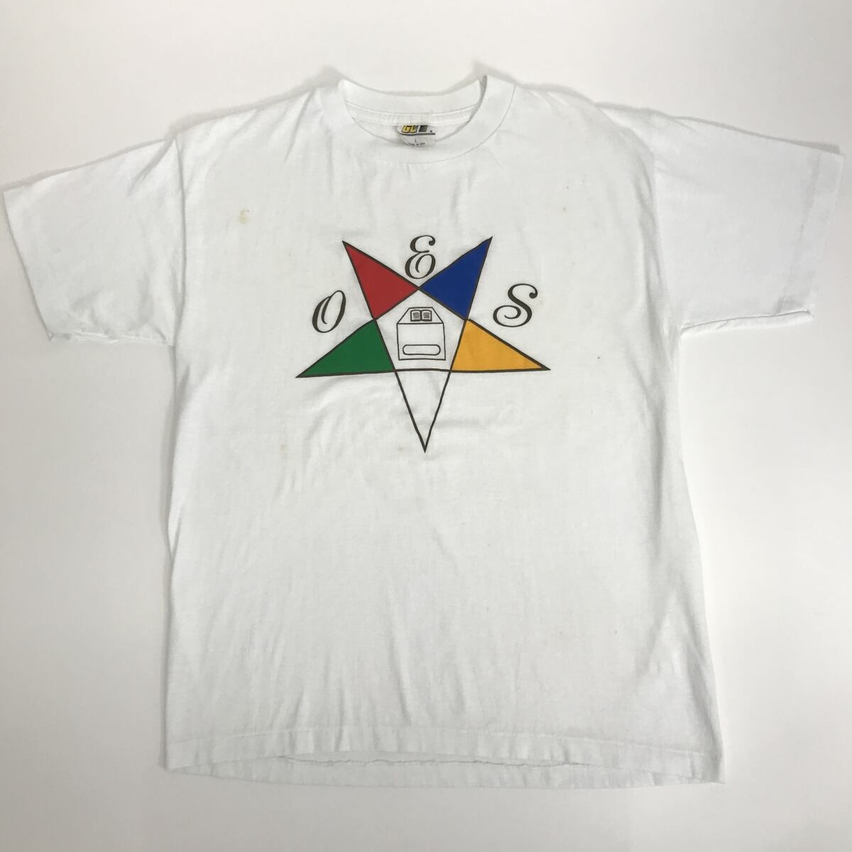 GC 90年代 USA製 OGS ORDER OF THE EASTERN STAR フリーメーソン 付属機関 ロゴプリント Tシャツ ホワイト L 表記 半袖