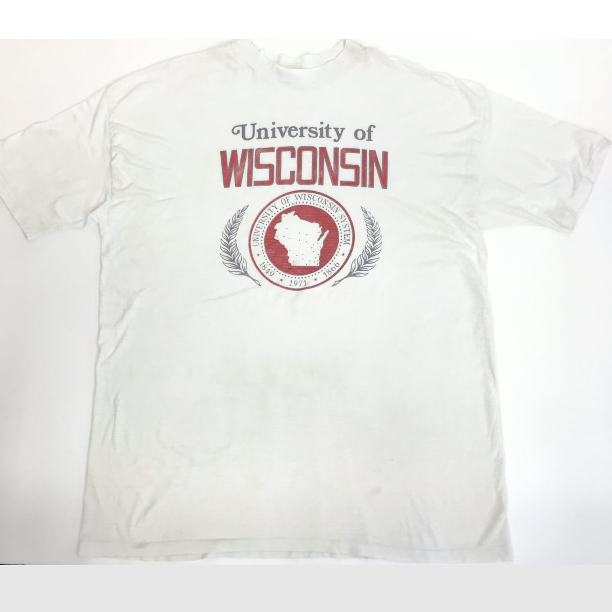 US VINTAGE WISCONSIN UNIVERSITY SYSTEM ウィスコンシン大学 システム カレッジプリント Tシャツ ホワイト XXXL 位 半袖