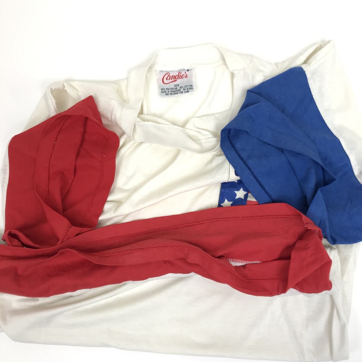 CANDIE'S USA 星条旗 STARS AND STRIPES ポケット付きTシャツ ポケT 袖裾 切り替え ホワイト XXL位 半袖