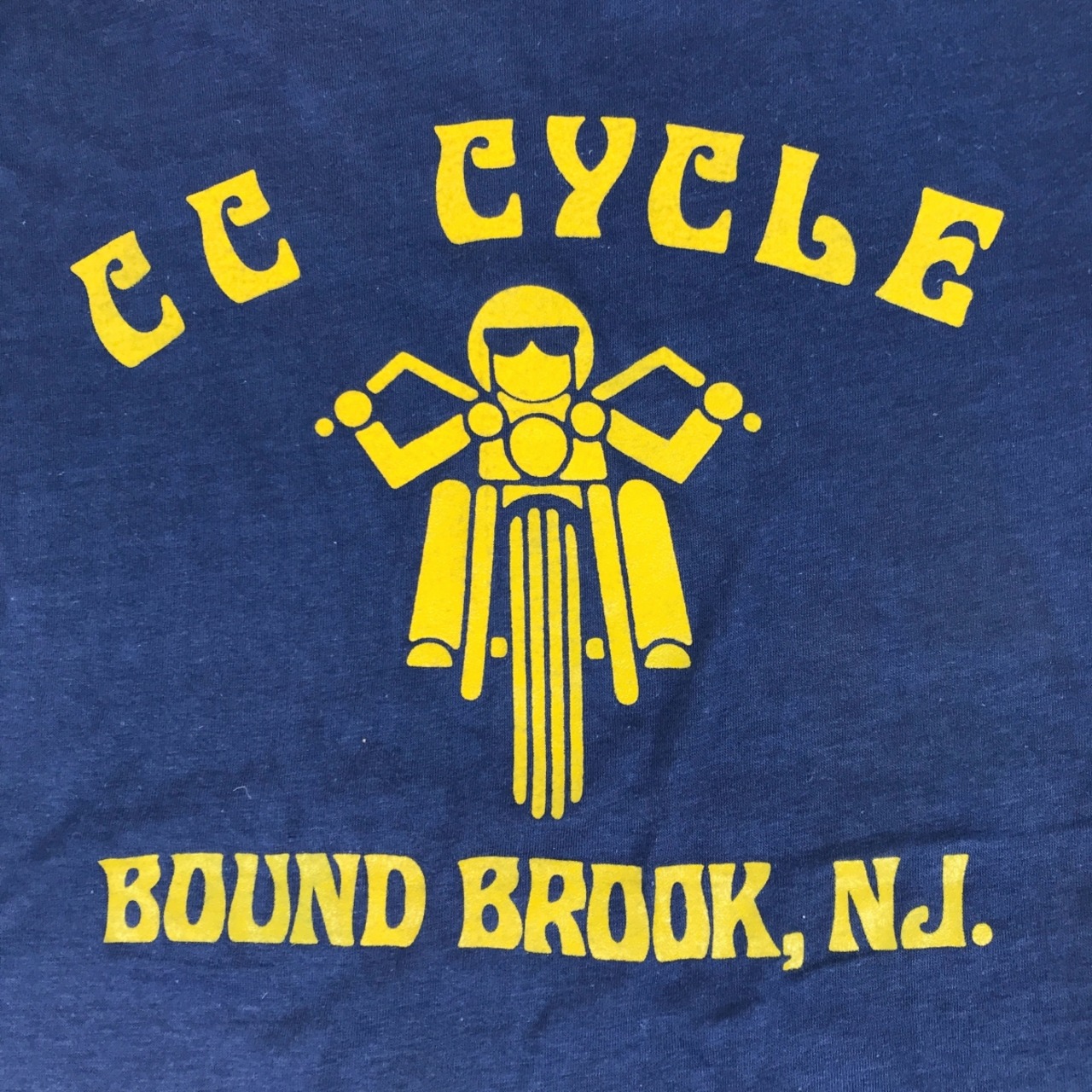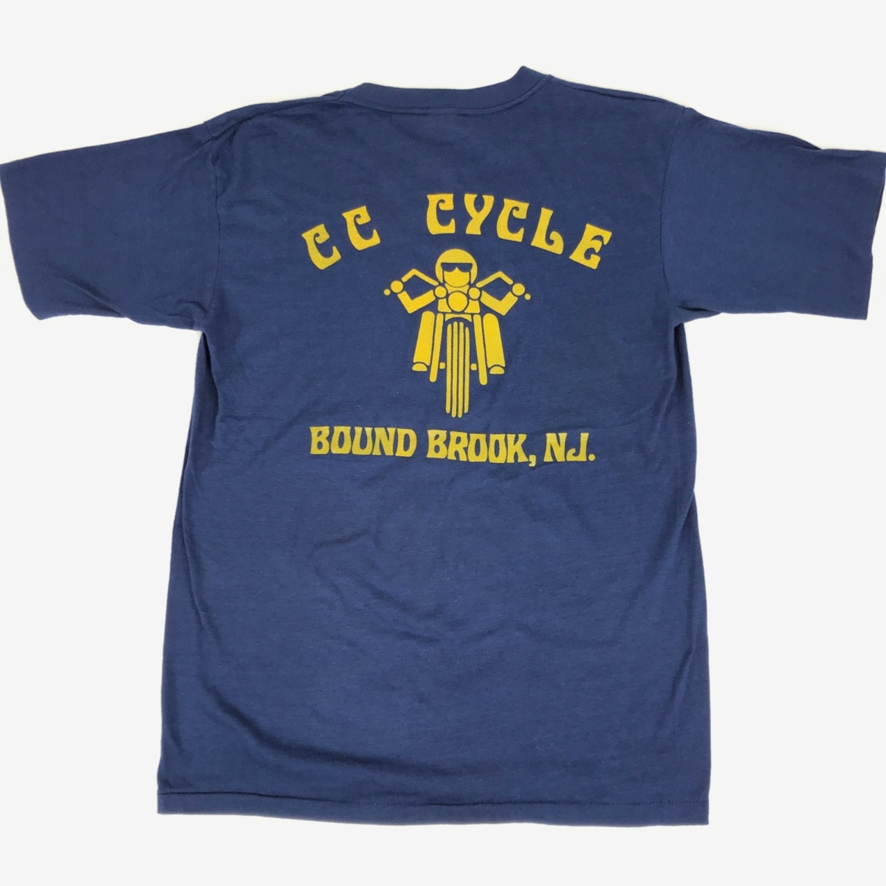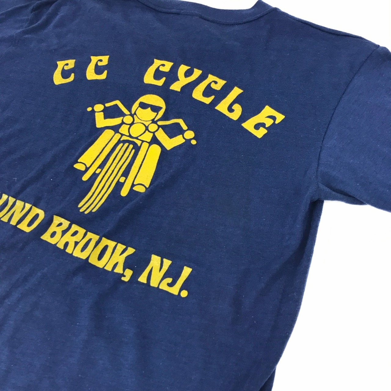 MILLER ミラー 80〜 90年代 USA製 CC CYCLE CLUB 両面プリントTシャツ バイカー MOTORCYCLE CLUB Tシャツ ネイビー L 位 半袖