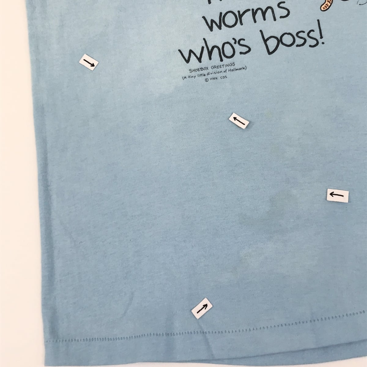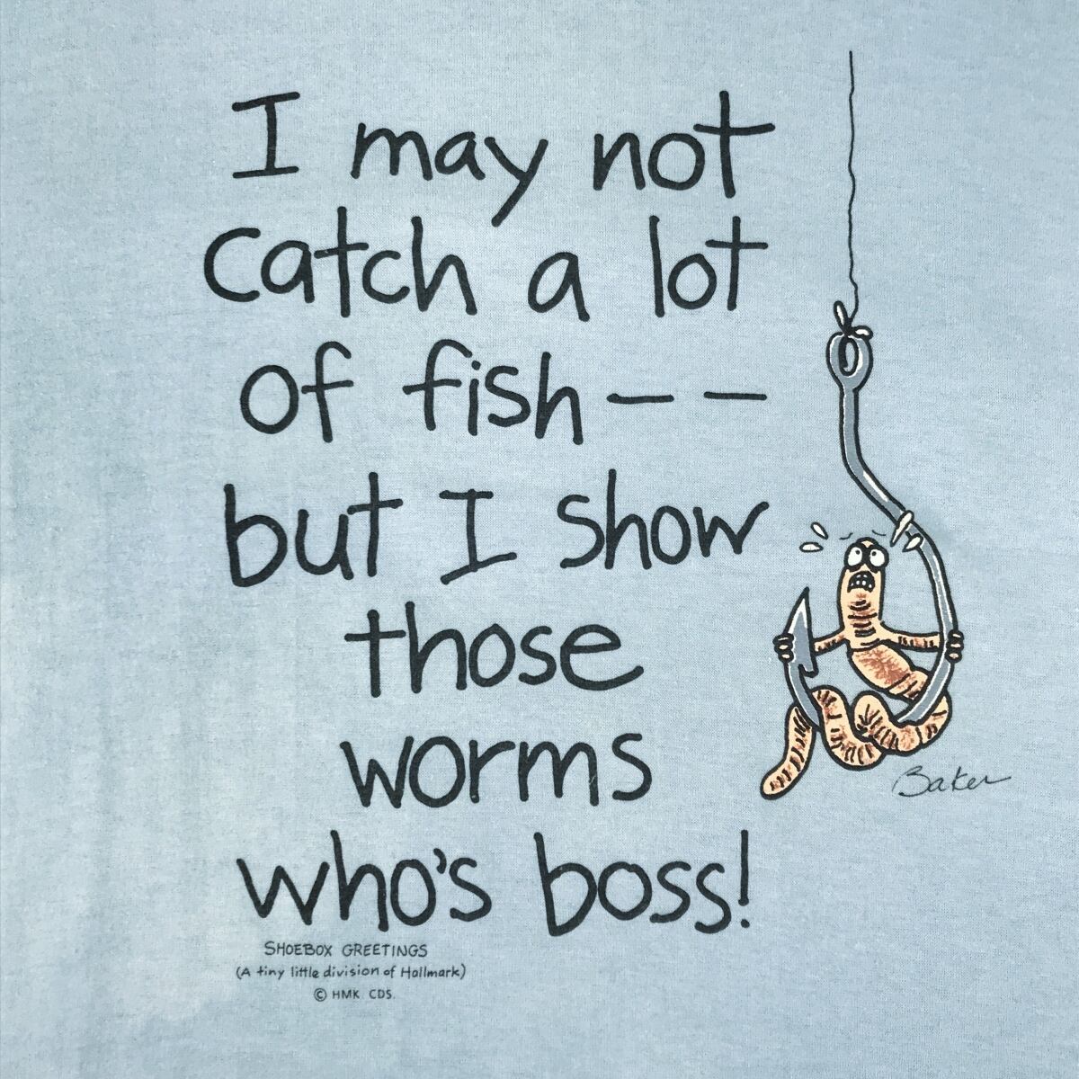 SHOEBOX GREETINGS 80 〜90年代 USA製 釣り ワーム ジョークTシャツ グラフィックTシャツ アイスブルー LARGE 表記 半袖