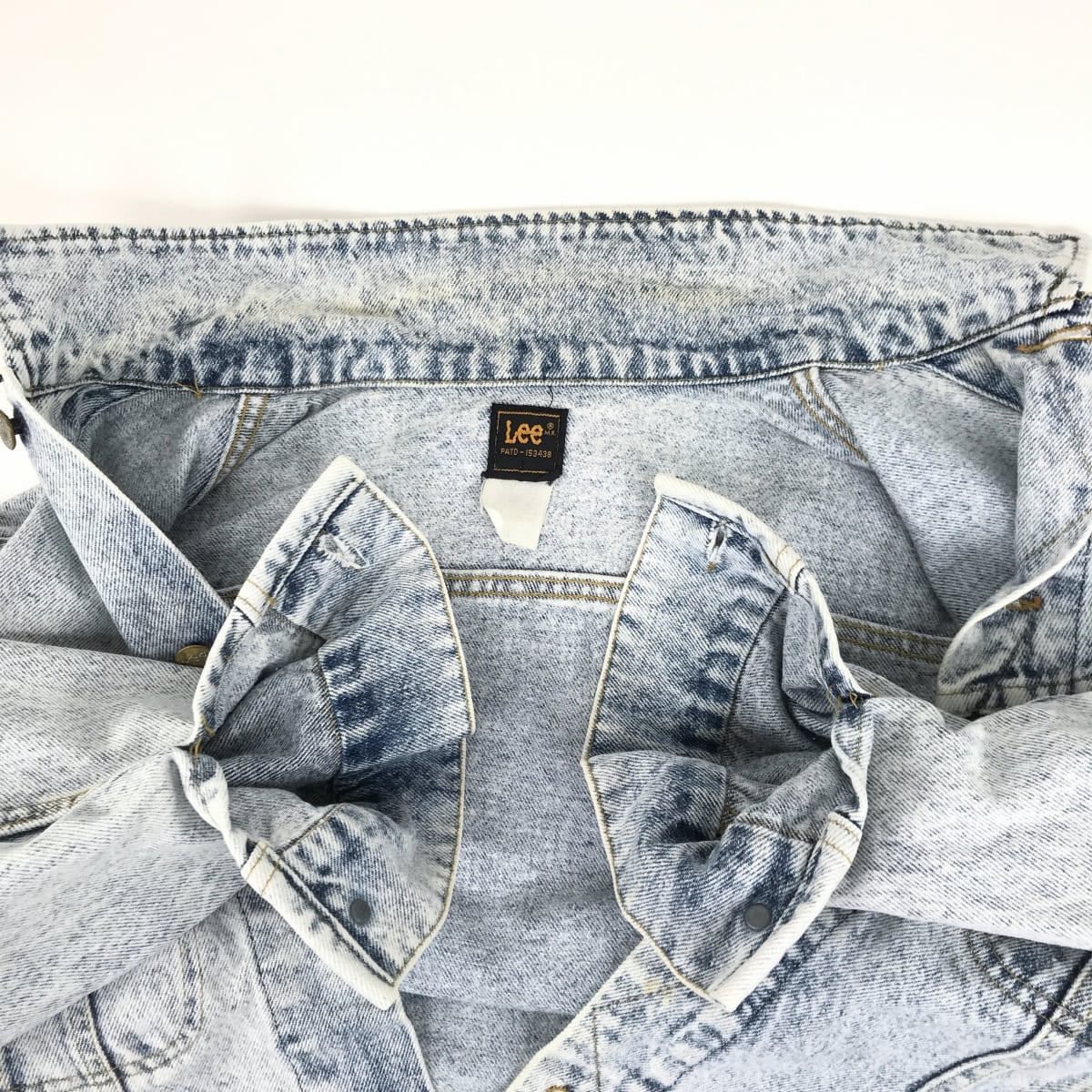 LEE リー 80〜 90年代 220-J PATD -153438 デニムジャケット サイドポケット付き ケミカルウォッシュ ストーンウォッシュ アイスブルー XL 位 長袖