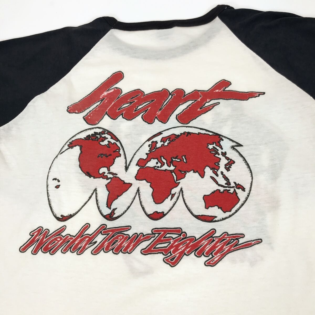THE KNITS 80年代 USA製 ハート THE HEART BEBE LA STRANGE WORLD TOUR EIGHTY ラグラン ベースボールT 7分袖 ツアーT バンド Tシャツ ロックT 両面プリント ホワイト L 半袖