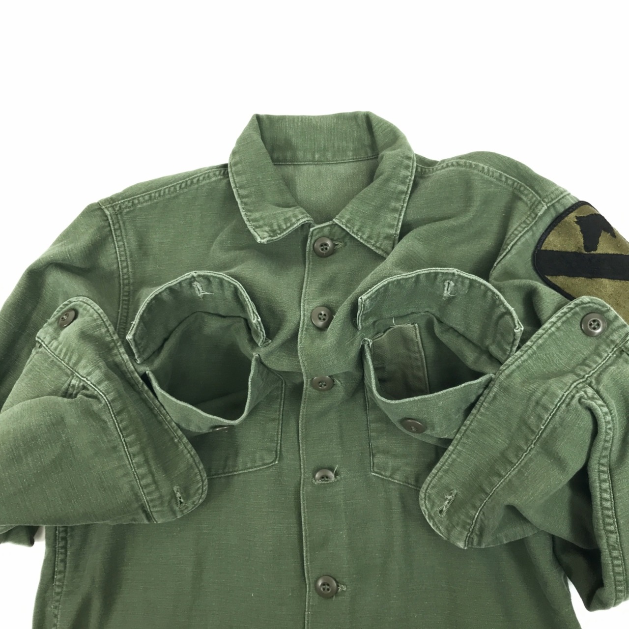 U.S.ARMY 60〜70年代 USA製 OG-107 ユーティリティシャツ UTILITY SHIRT シャツ袖 コットンサテン オリーブグリーン ML 位 長袖