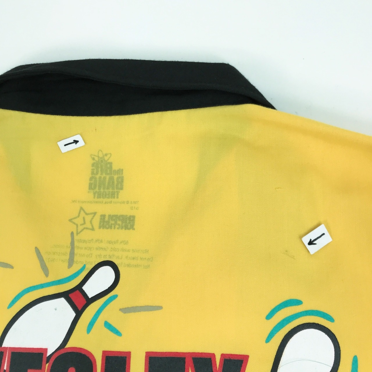 RIPPLE JUNCTION リップルジャンクション ポリレーヨン THE BIG BANG THEORY テレビ コメディ番組 THE WESLEY CRUSHERS バックプリント ボーリングシャツ イエロー 開襟 オープンシャツ L 表記 半袖