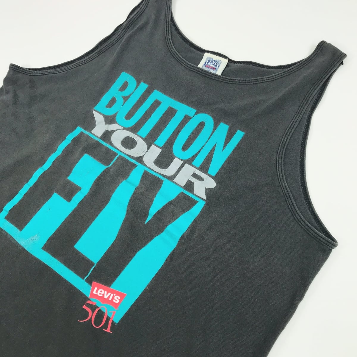 LEVI'S SHIRTS FOR JEANS リーバイス 90年代 USA製 501 BUTTON YOUR SHORTS ロゴ タンクトップ グレー M 袖なし