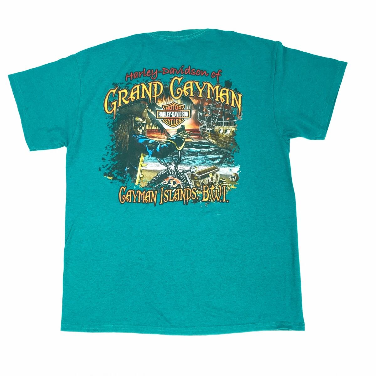 HARLEY DAVIDSON OF GRAND CAYMAN ハーレーダビッドソン 00年代 両面プリントTシャツ バックプリント ターコイズブルー L 表記 半袖