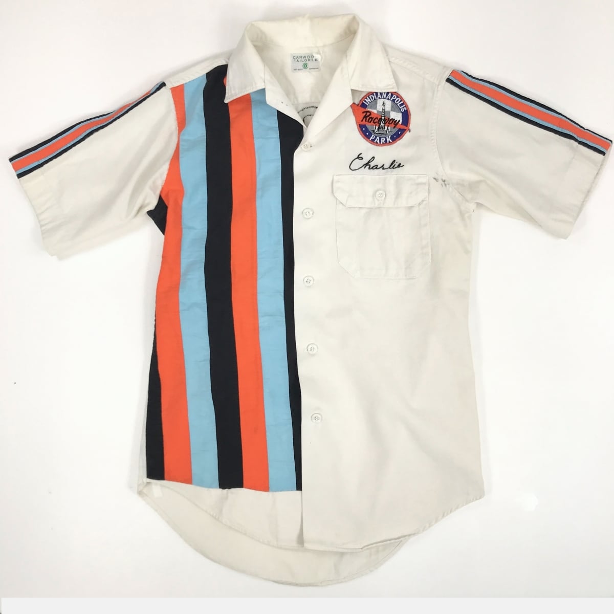 CARWOOD TAILORED カーウッド 60〜 70年代 INDIANAPOLIS RACEWAY 切り替え ライン レーシングシャツ ワークシャツ オフホワイト ML 位 半袖 | 古着屋 EAGLEBASE