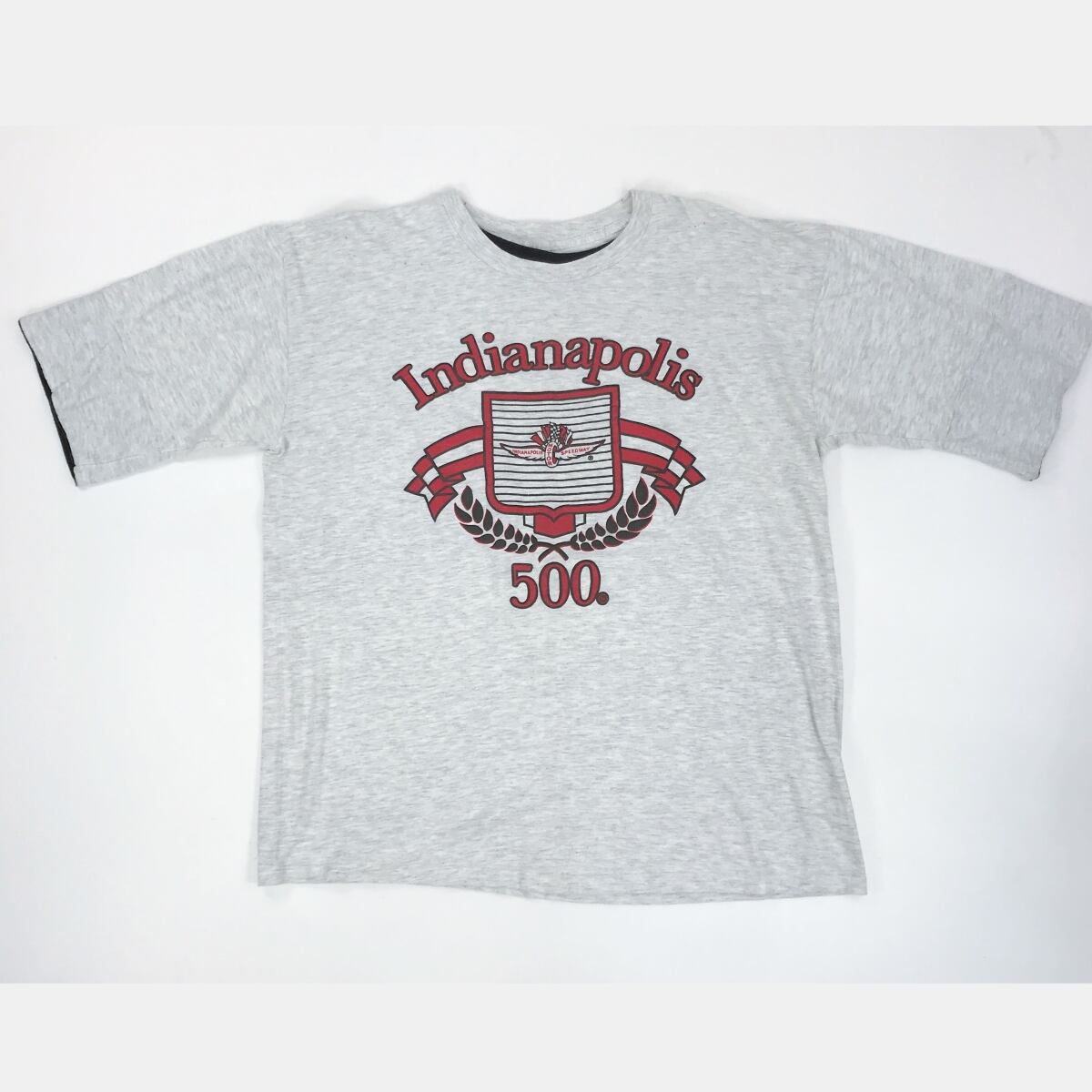 VELVA SHEEN 80〜 90年代 USA製 INDIANAPOLIS MOTOR SPEED WAY 500 フェイクレイヤード Tシャツ アッシュグレー XL 表記 半袖