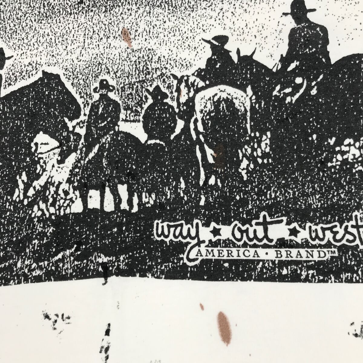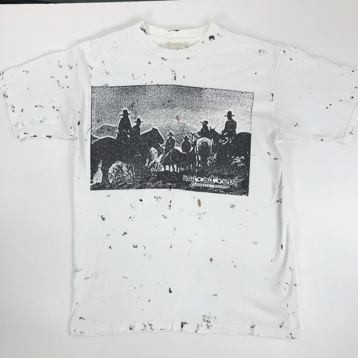 WAY OUT WEST 90年代 USA製 WESTERN ウエスタン カウボーイ シルエット 総柄 全柄 オールオーバーパターン Tシャツ ホワイト XL 位 半袖