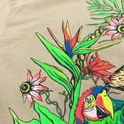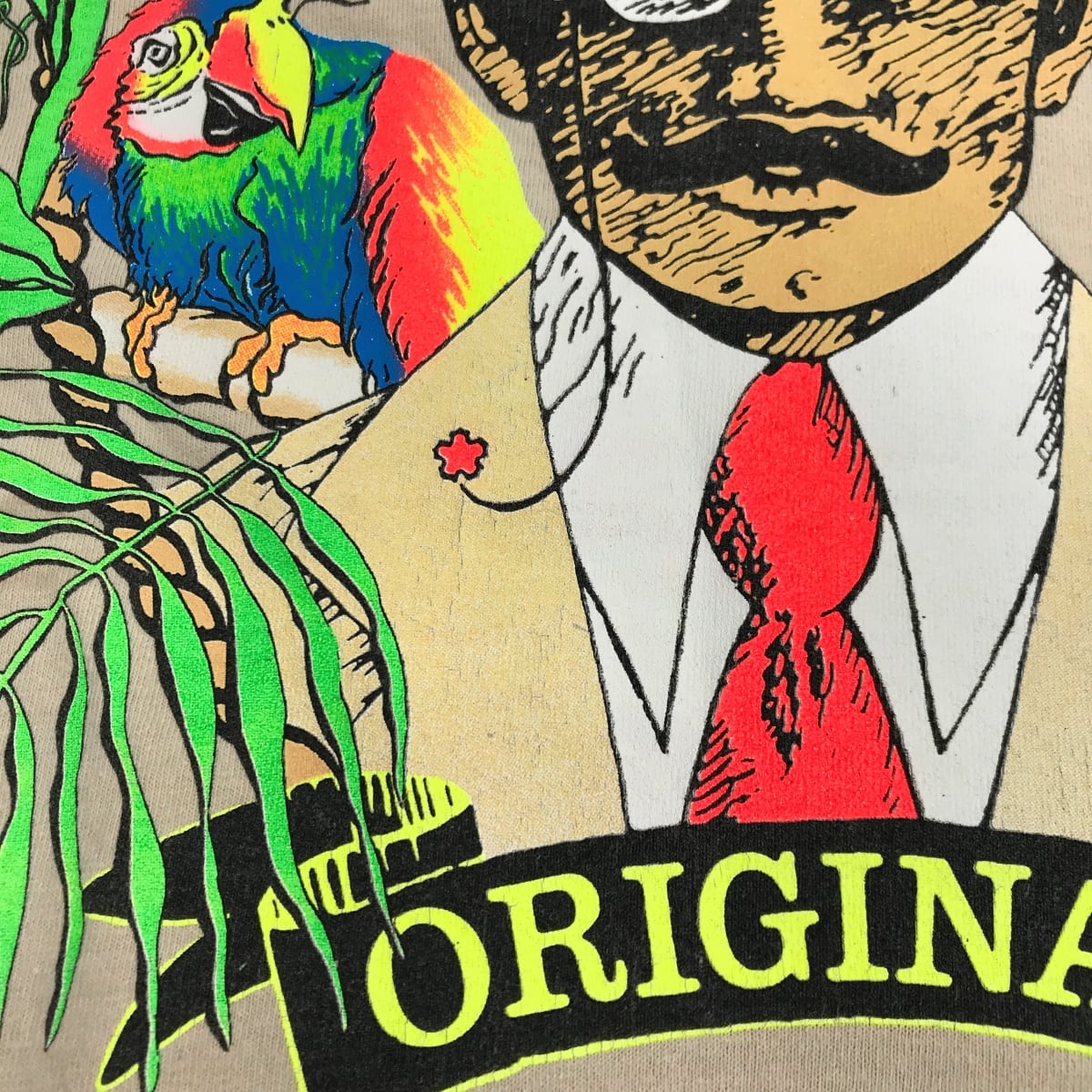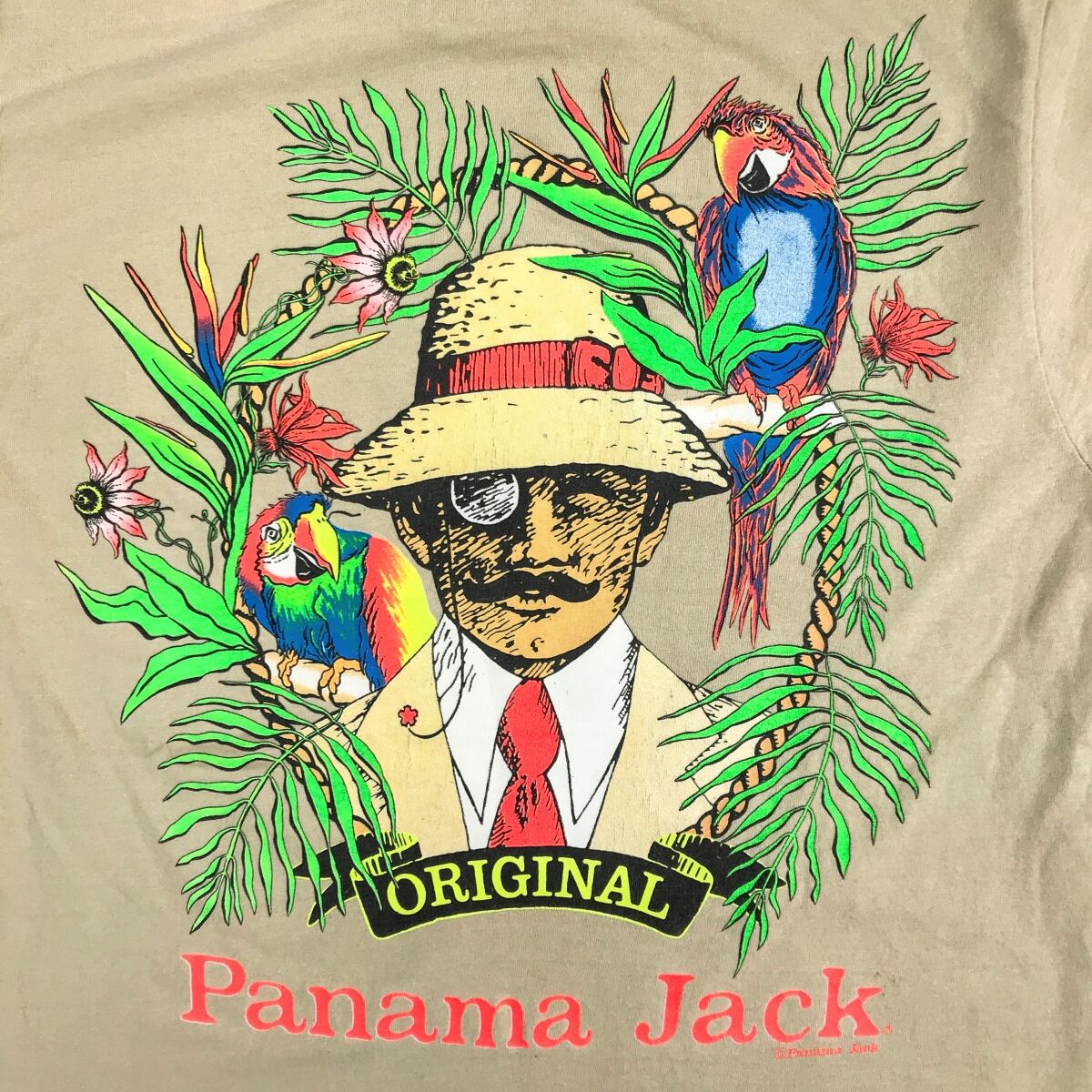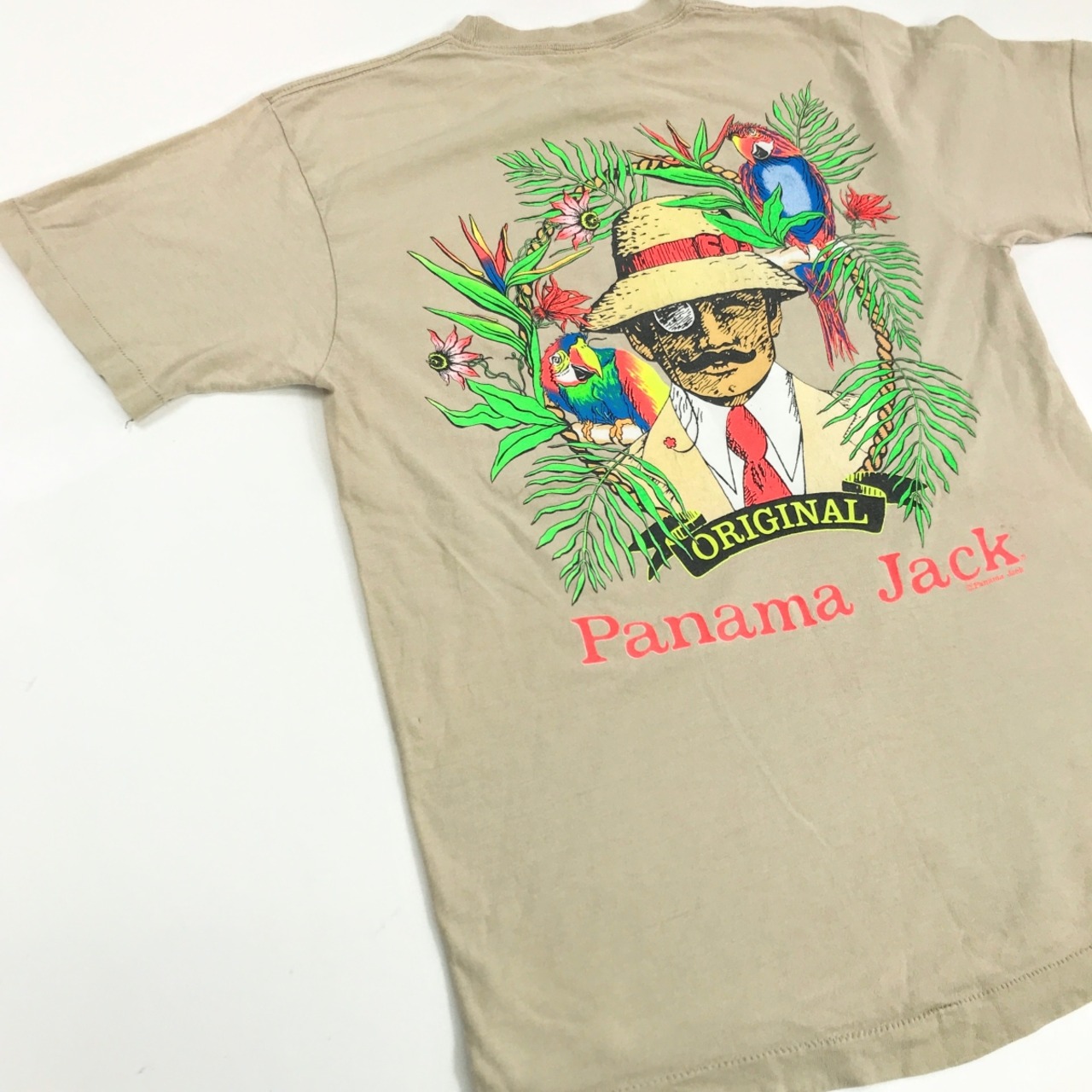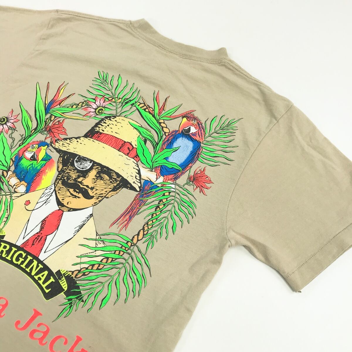 PANAMA JACK パナマジャック 80?90年代 80'S 両面 蛍光プリント PARROT オウム POP サーフ Tシャツ ベージュ L 表記 半袖
