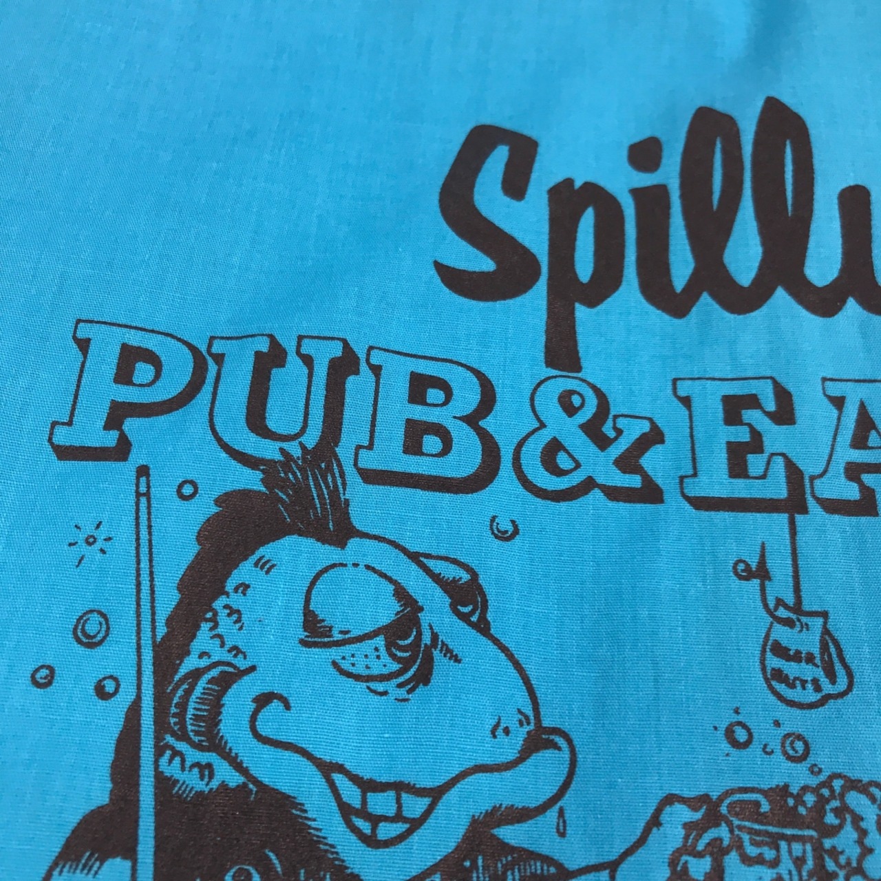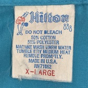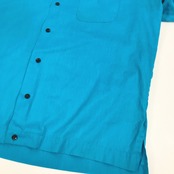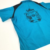 HILTON ヒルトン 70年代 USA製 襟芯入り 企業プリント入り ボーリングシャツ ターコイズブルー X-LARGE 表記 半袖