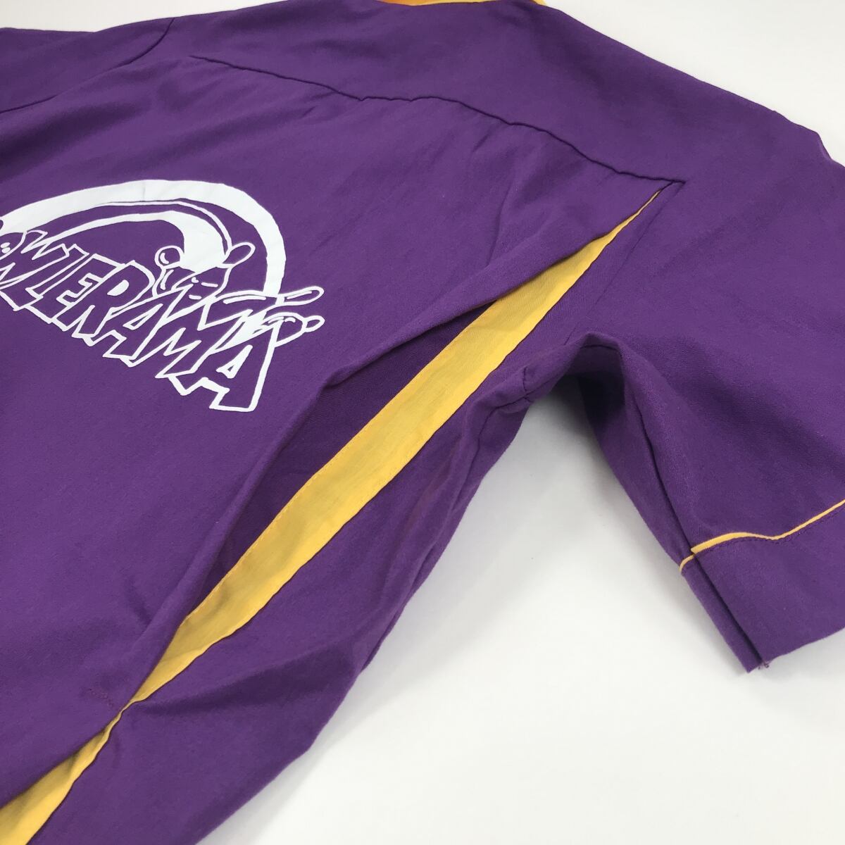 HILTON ヒルトン 美品 80年代 USA製 襟芯入り BOWLERAMA プリント入り ボーリングシャツ 開襟 オープンシャツ パープル LARGE 表記 半袖