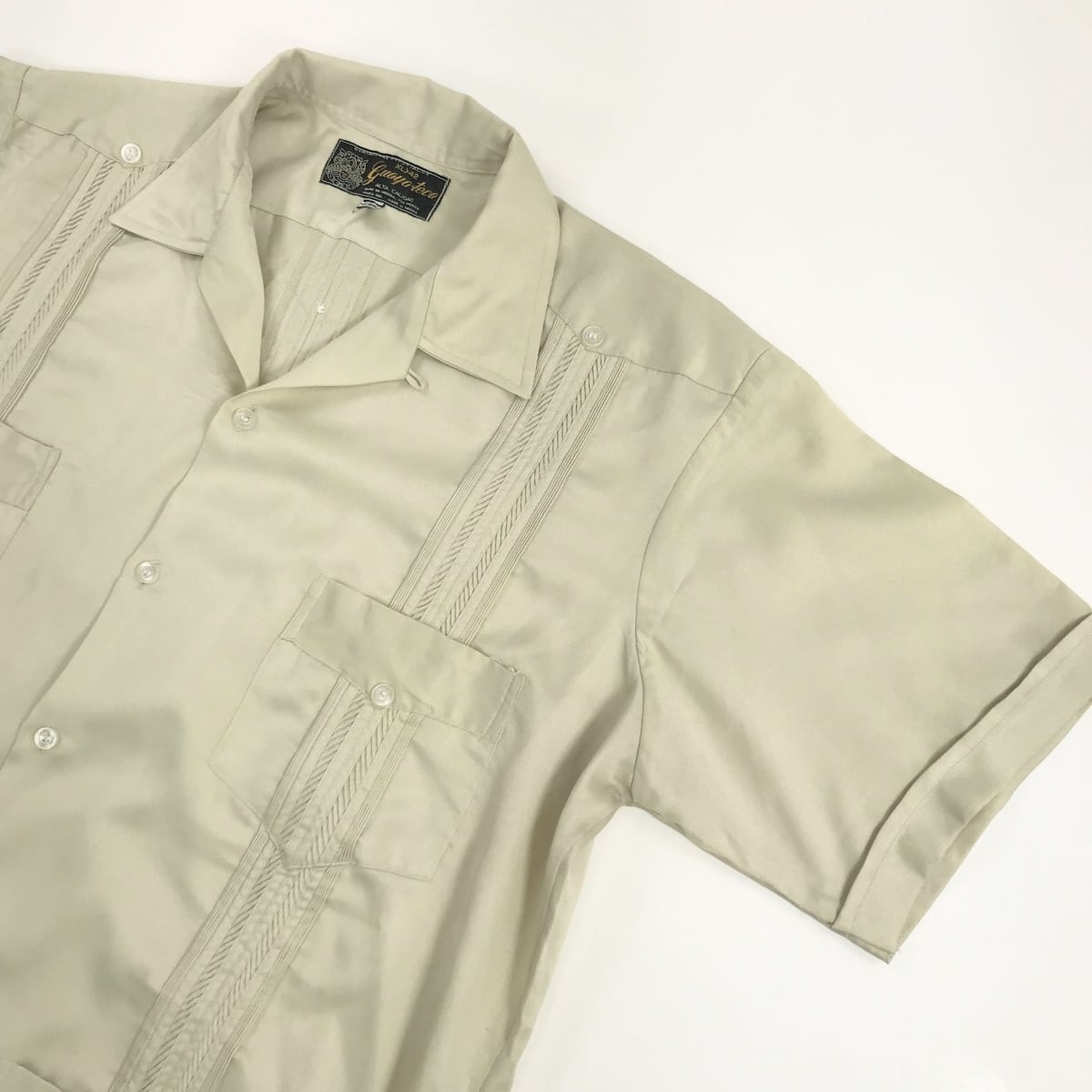 GUAYA TECA グワヤテカ 70年代 MEXICO製 キューバシャツ GUAYABERA SHIRTS ベージュ XL 表記 半袖