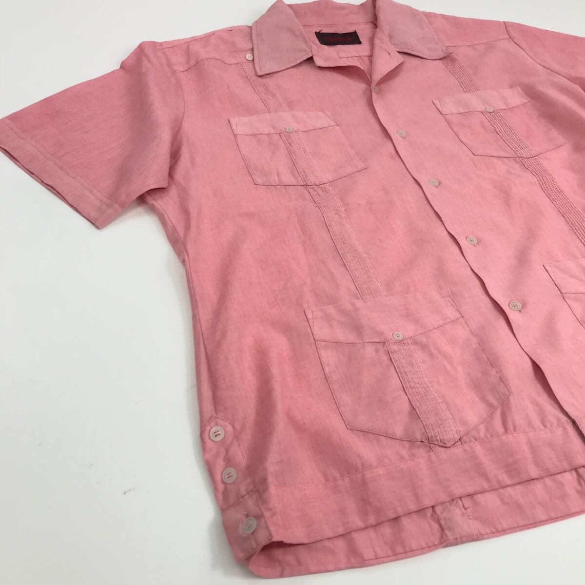 CAMPUS キャンバス 70年代 オーバーダイ 後染め キューバシャツ GUAYABERA SHIRTS ピンク XL 表記 半袖